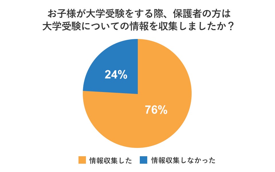 その結果、76%の保護者が大学受験に向けて積極的に情報収集を行っていたことがわかりました。多くの保護者が子どもの大学受験について一緒に情報収集し、サポートを行っているようです。