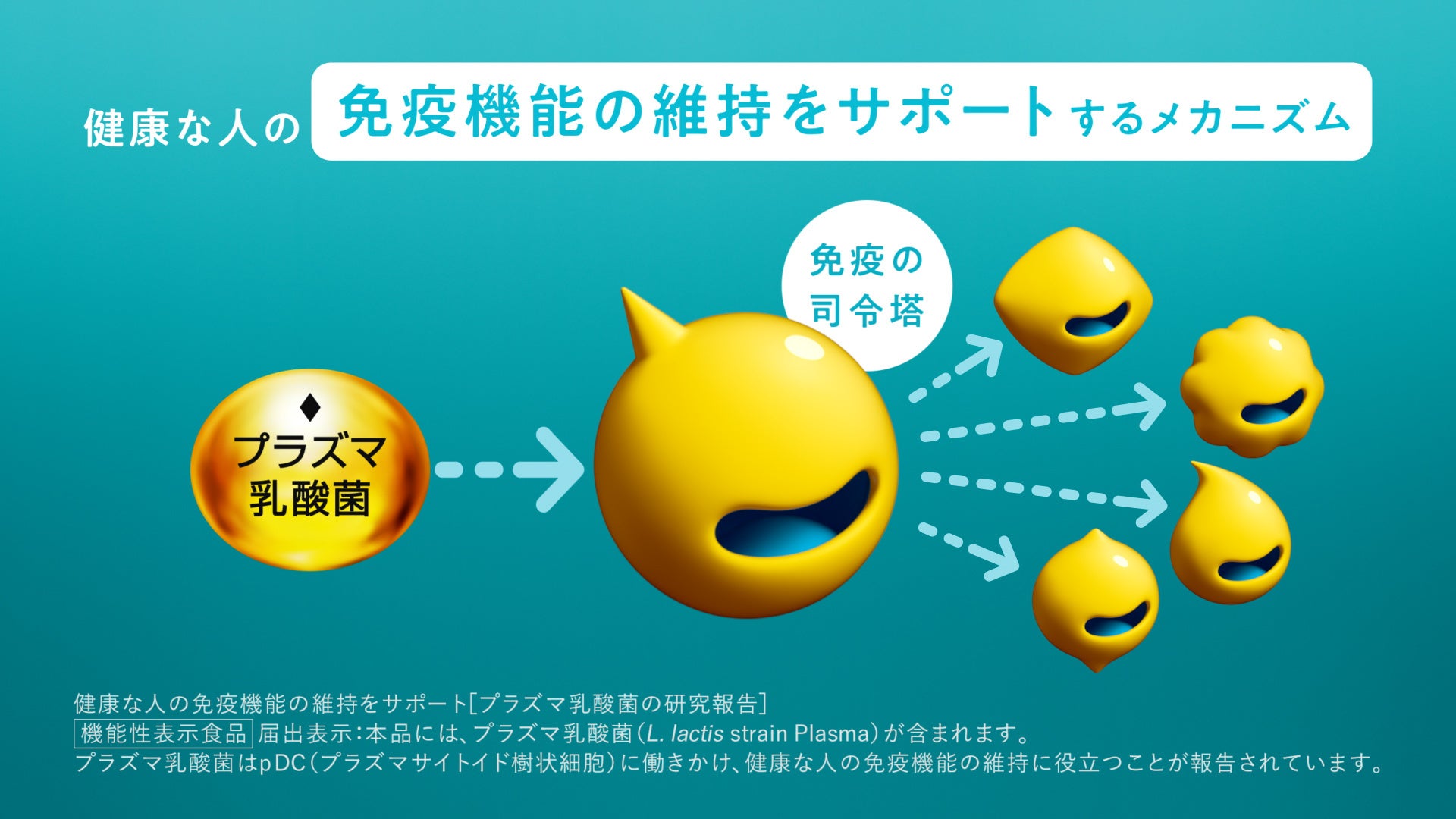 ●届出表示:本品には、プラズマ乳酸菌(L. lactis strain Plasma)が含まれます。プラズマ乳酸菌はpDC(プラズマサイトイド樹状細胞)に働きかけ、健康な人の免疫機能の維持に役立つことが報告されています。