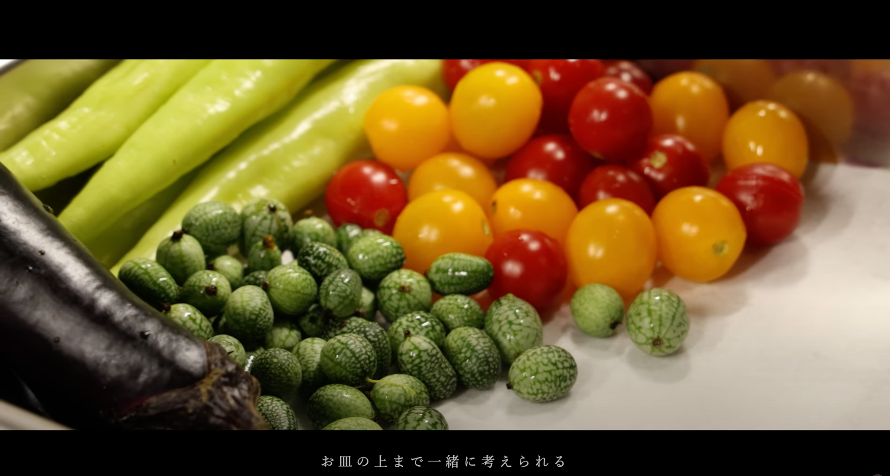 本動画のタイトル「THINK DISHES GROW VEGETABLES―1粒の種から⾷卓までー」は、主⼈公である野菜農家・鈴木智哉さんが指針として掲げる⾔葉です。本作は、この⾔葉からインスピレーションを受けて制作されました。