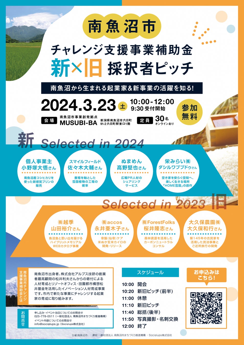 南魚沼市で新たなビジネスにチャレンジする人材を育成する「南魚沼市チャレンジ支援事業補助金」R6年度の採択者が決定!R5年度・R6年度の採択者が一同に集結し、新事業のビジネスピッチがご覧いただけます!