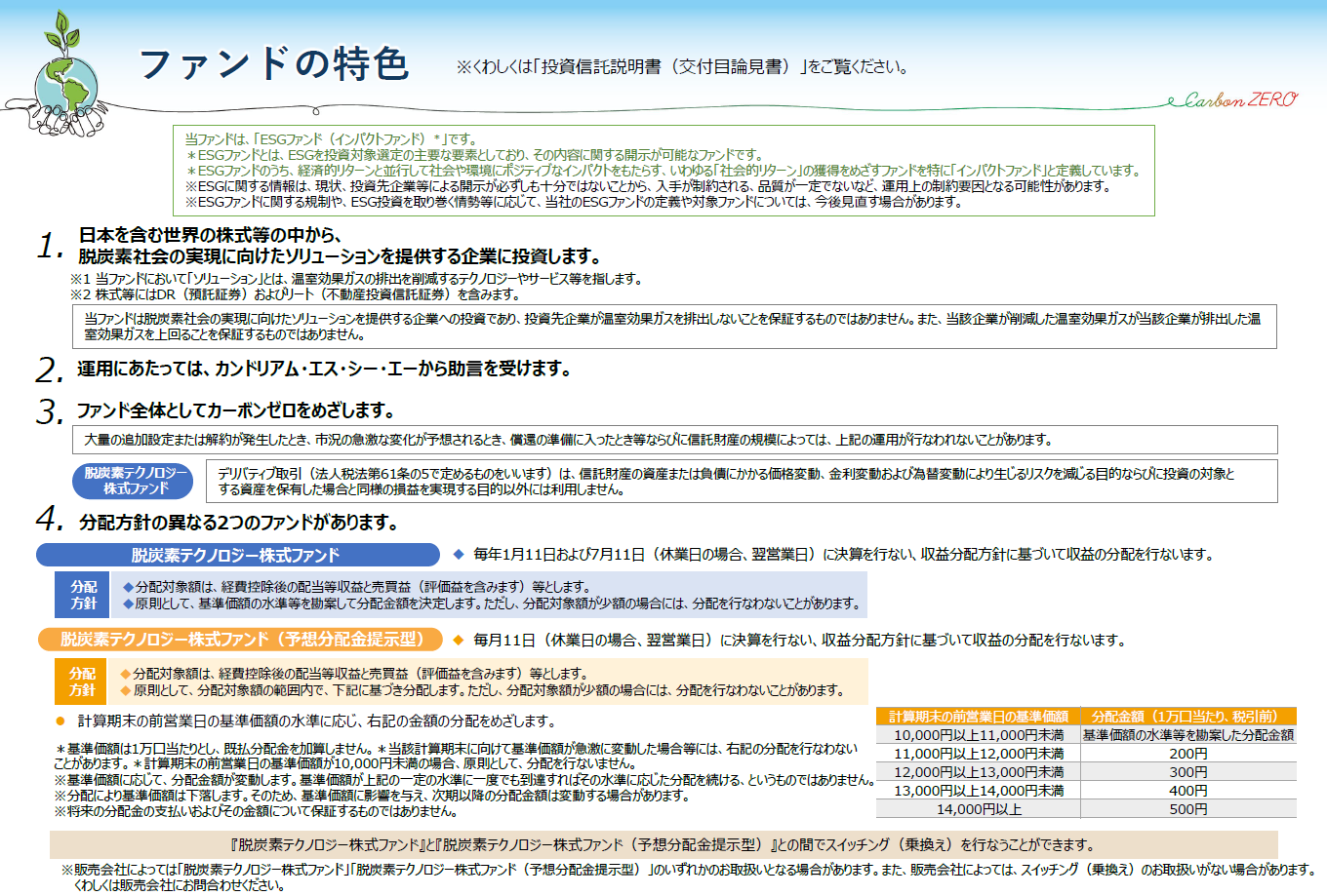 対象ファンド | 脱炭素テクノロジー株式ファンド(愛称:カーボンZERO) 脱炭素テクノロジー株式ファンド(予想分配金提示型)(愛称:カーボンZERO(予想分配金提示型)) |
