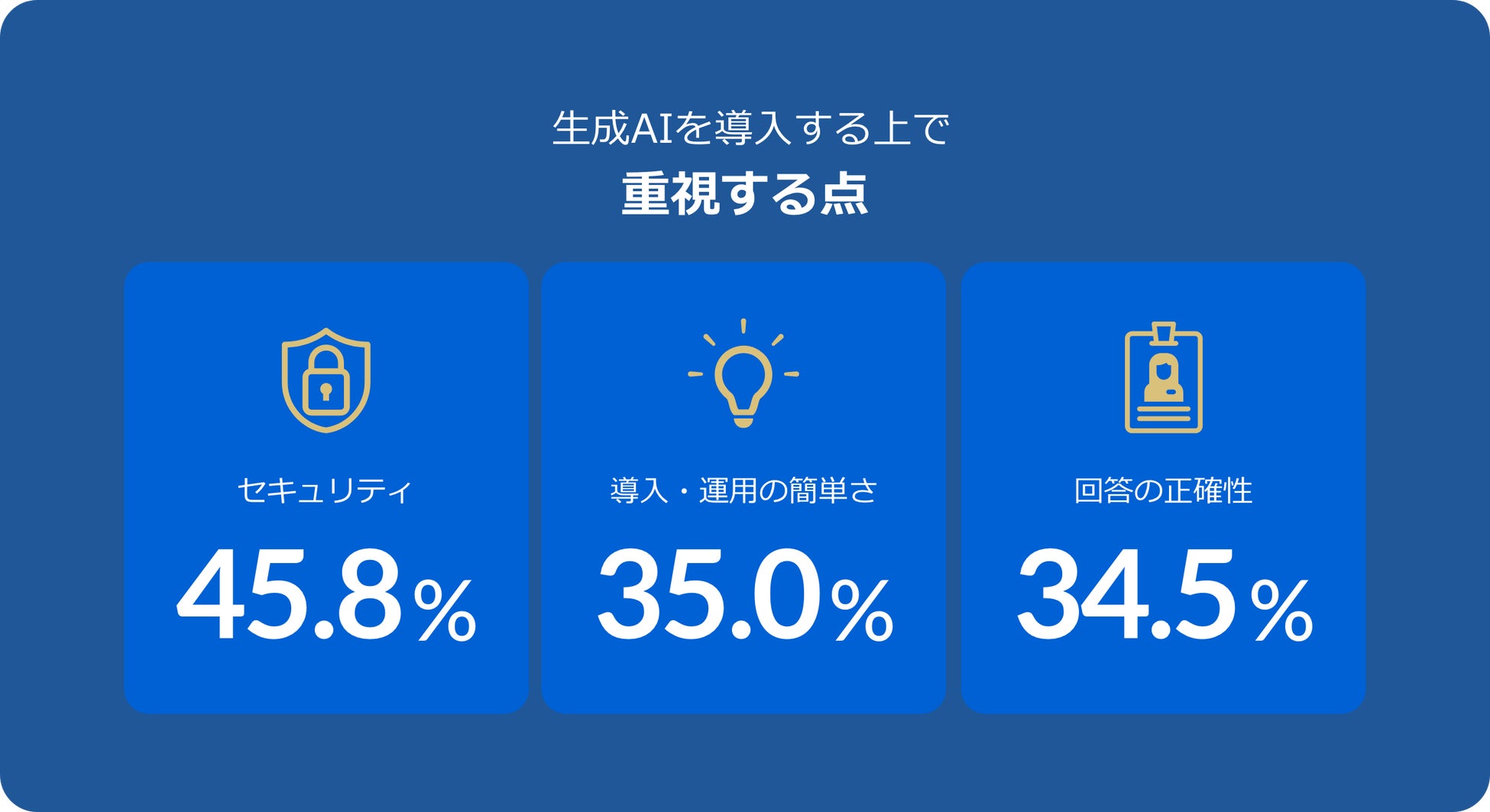 ・生成AIを導入する上で重視する点はセキュリティが1位(45.8%)