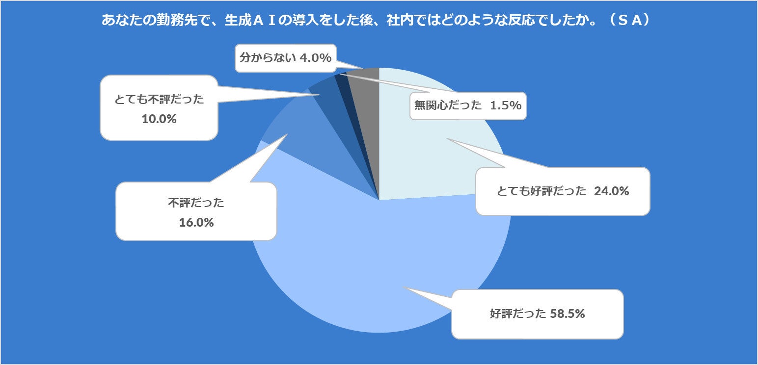 全社的に生成AIの導入を進める企業が多く、導入後の社内の反応もポジティブ