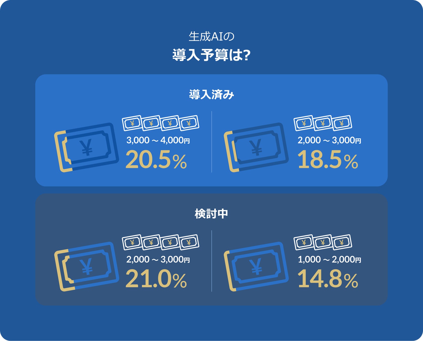 生成AIの導入検討における予算は21.0%の企業が月額2,000円以上3,000円未満と回答