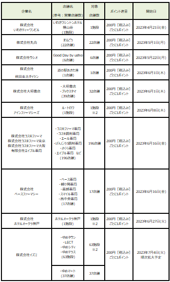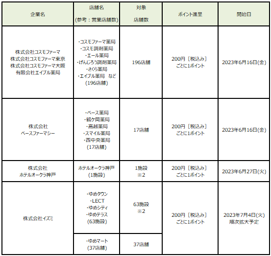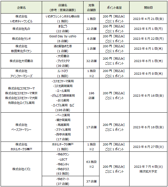 * 記載の店舗数は、発表日現在の店舗数となります。