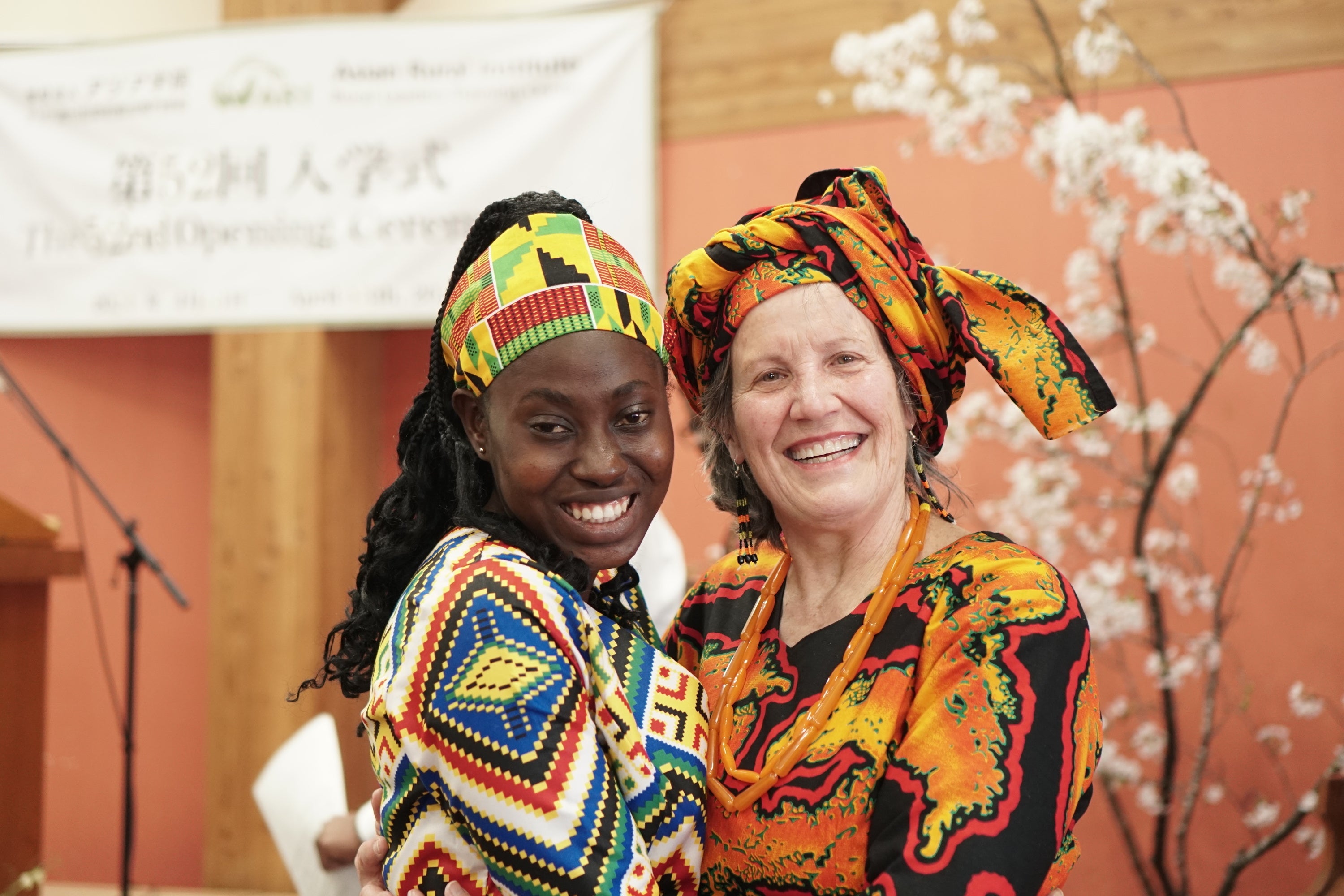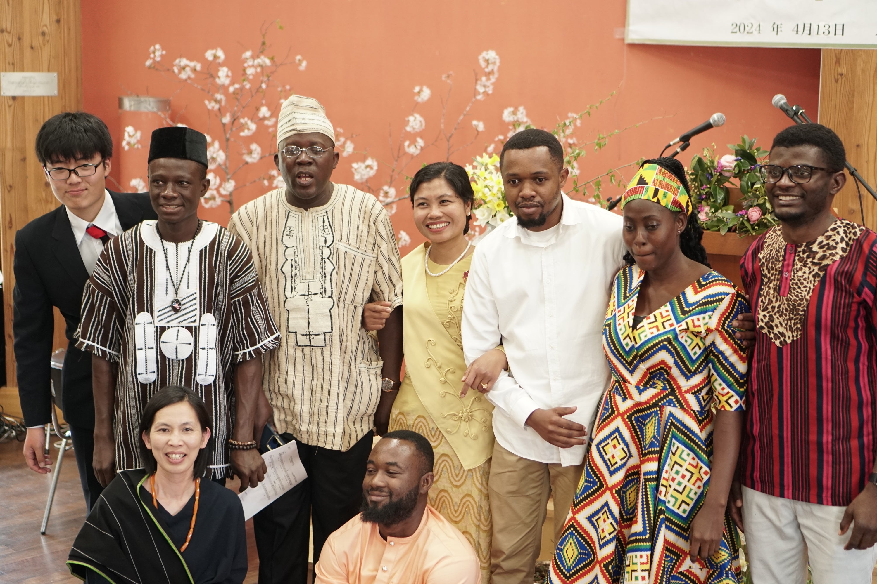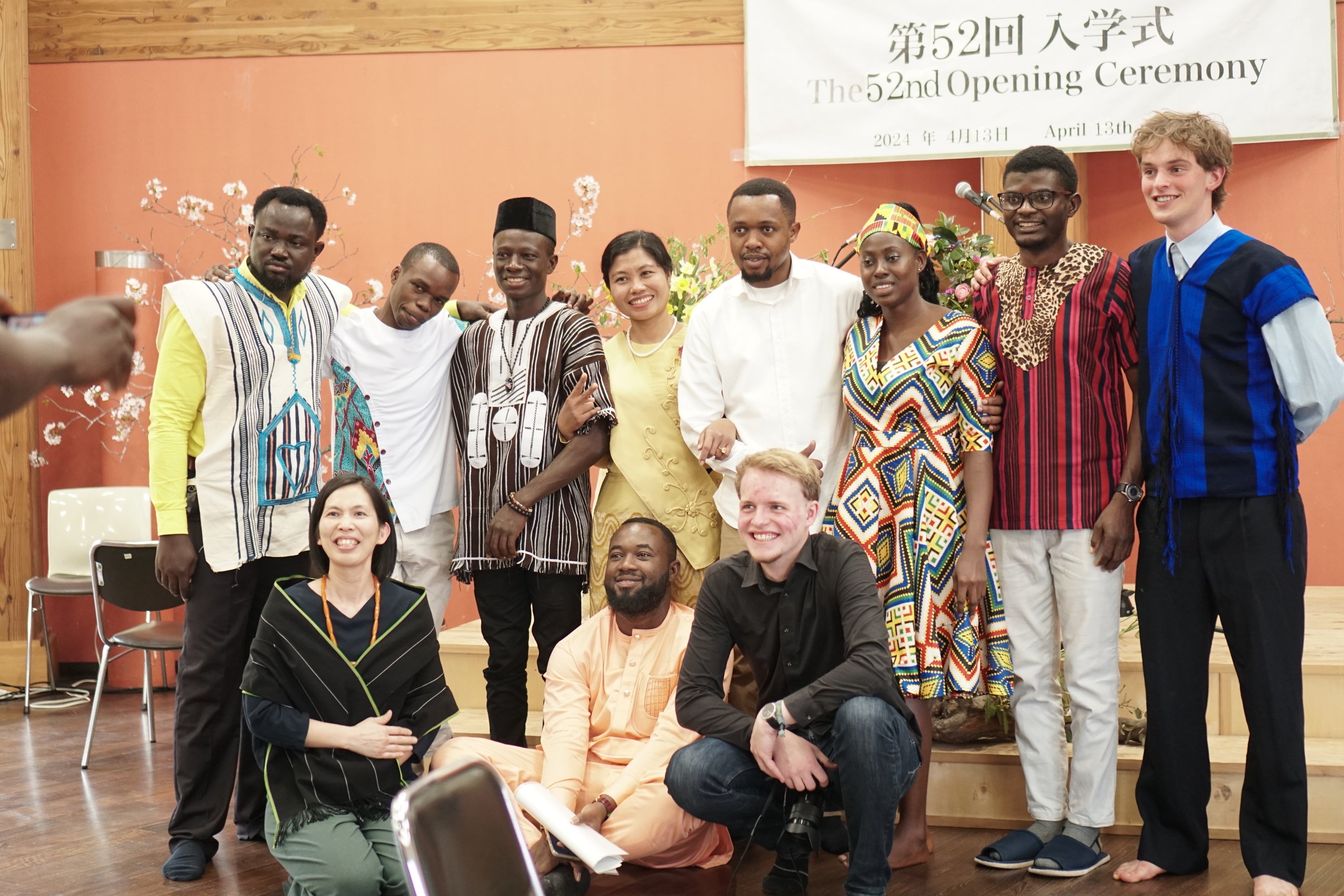 満開の桜の中、終始、集った皆さまの笑顔があふれる穏やかな式となりました。学生たちは昨日まで練習してきた日本語の自己紹介をみごとにやりとげました。