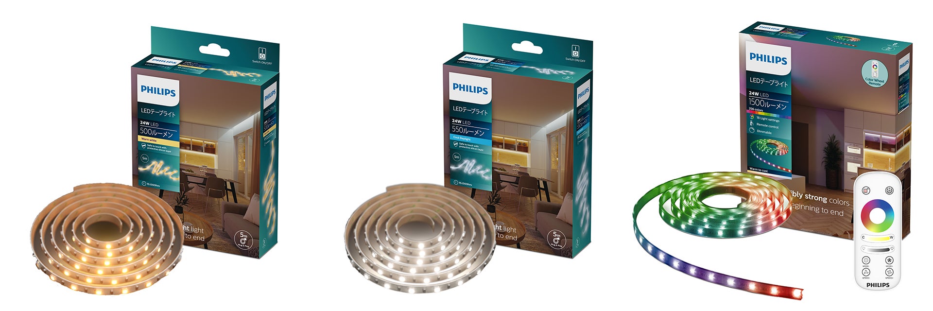 Philips LEDシリーズ初となる「Philips LED テープライト」、電球色/昼光色/マルチカラー(RGBICWW搭載、カラー・電球色~昼光色)の3種を新発売