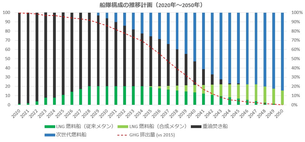 当社自動車専用船 船隊構成の推移計画(2020年~2050年)(2022年3月時点)