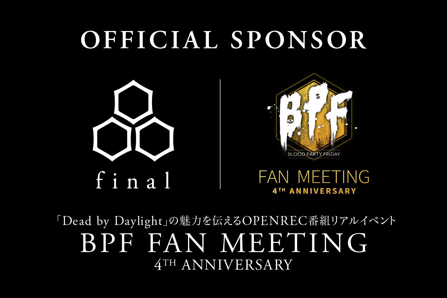finalはゲーミングイヤホンを通じて、「BPF FAN MEETING 4TH ANNIVERSARY」の益々の盛り上がり、参加ゲストのプレイの向上に寄与して参ります。