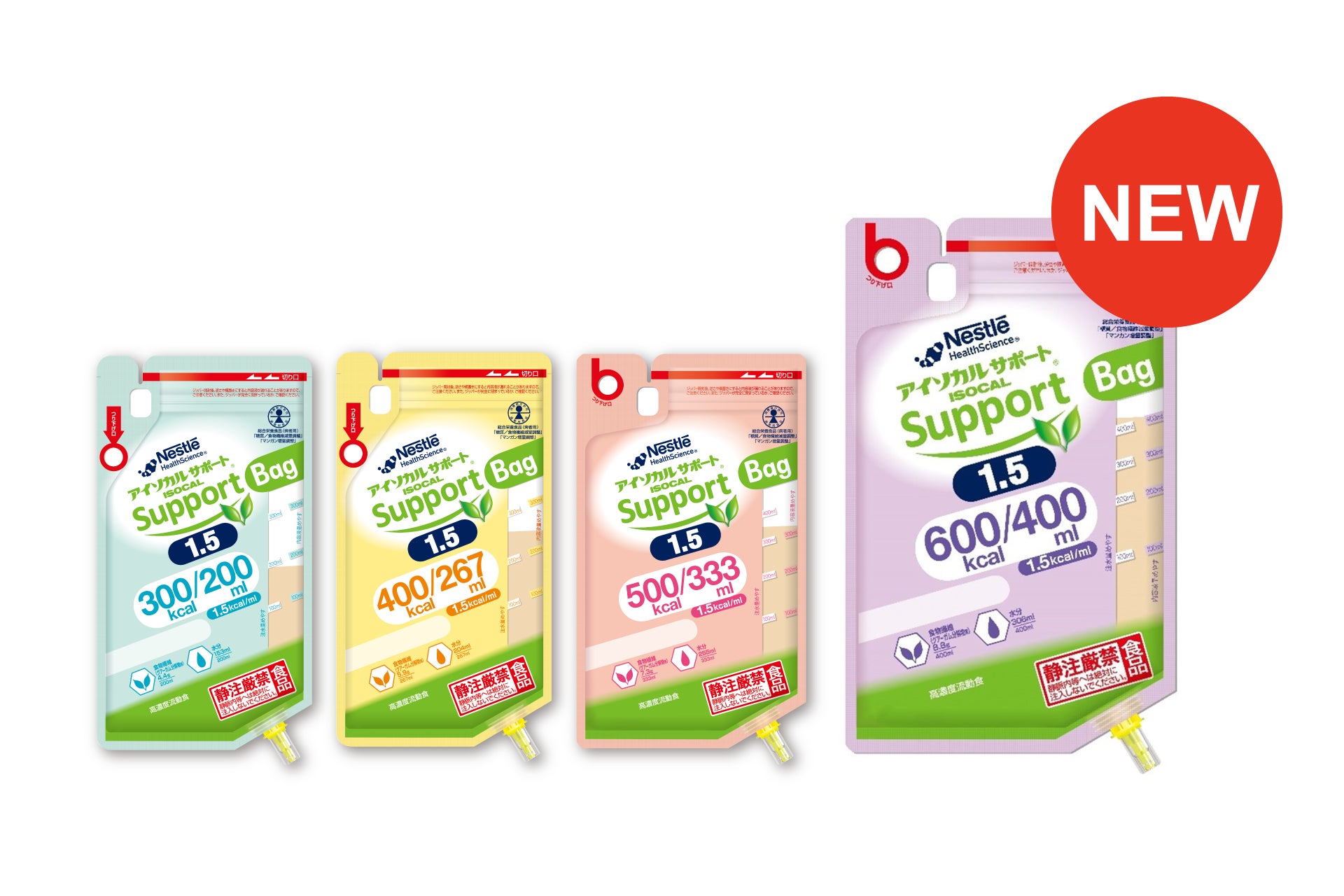 食物繊維グアーガム分解物配合の、少量高エネルギー高濃度液状流動食「アイソカルサポート® 1.5 Bag」から600kcal/400mlサイズが新発売!