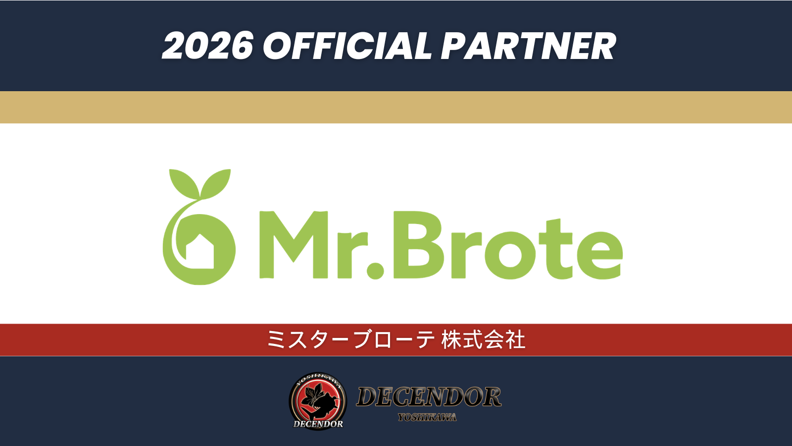 この度、一般社団法人ディセンドーラ吉川(所在地:埼玉県吉川市、代表理事:塩﨑巧巳、以下ディセンドーラ吉川)は、ミスターブローテ株式会社(所在地:埼玉県吉川市、代表取締役:中村道徳、以下ミスターブローテ)とオフィシャルパートナー契約を更新したことをお知らせいたします。