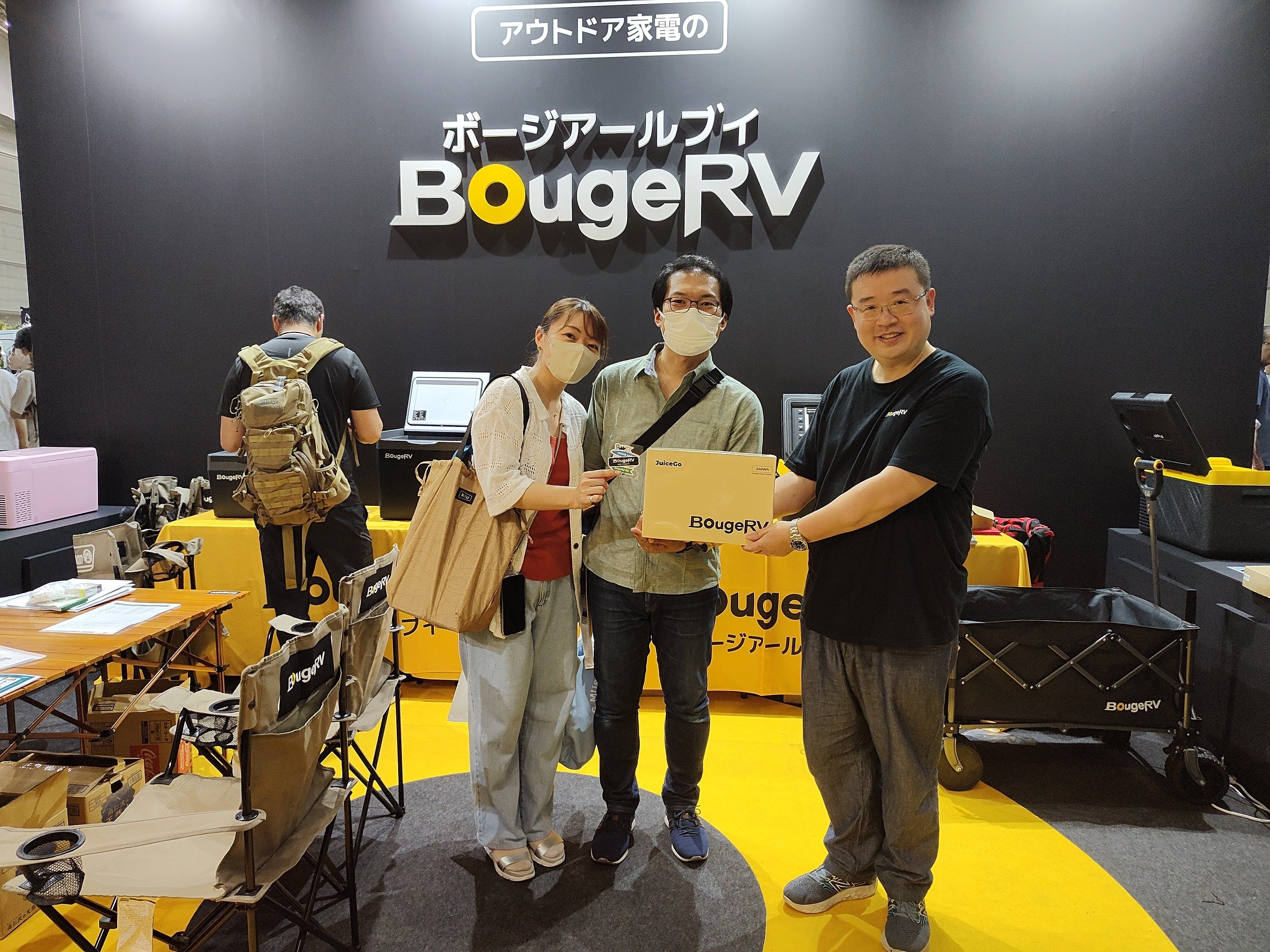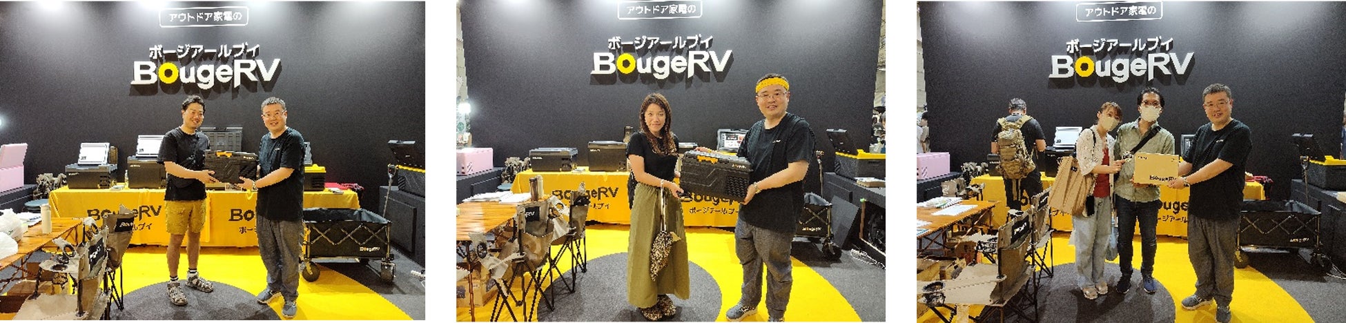 BougeRVは、本年初出展をし、ポータブル冷蔵庫、ポータブル電源、ポータブルエアコン、ソーラーパネルなどの人気製品12種類と、開発中の電動カートを展示いたしました。