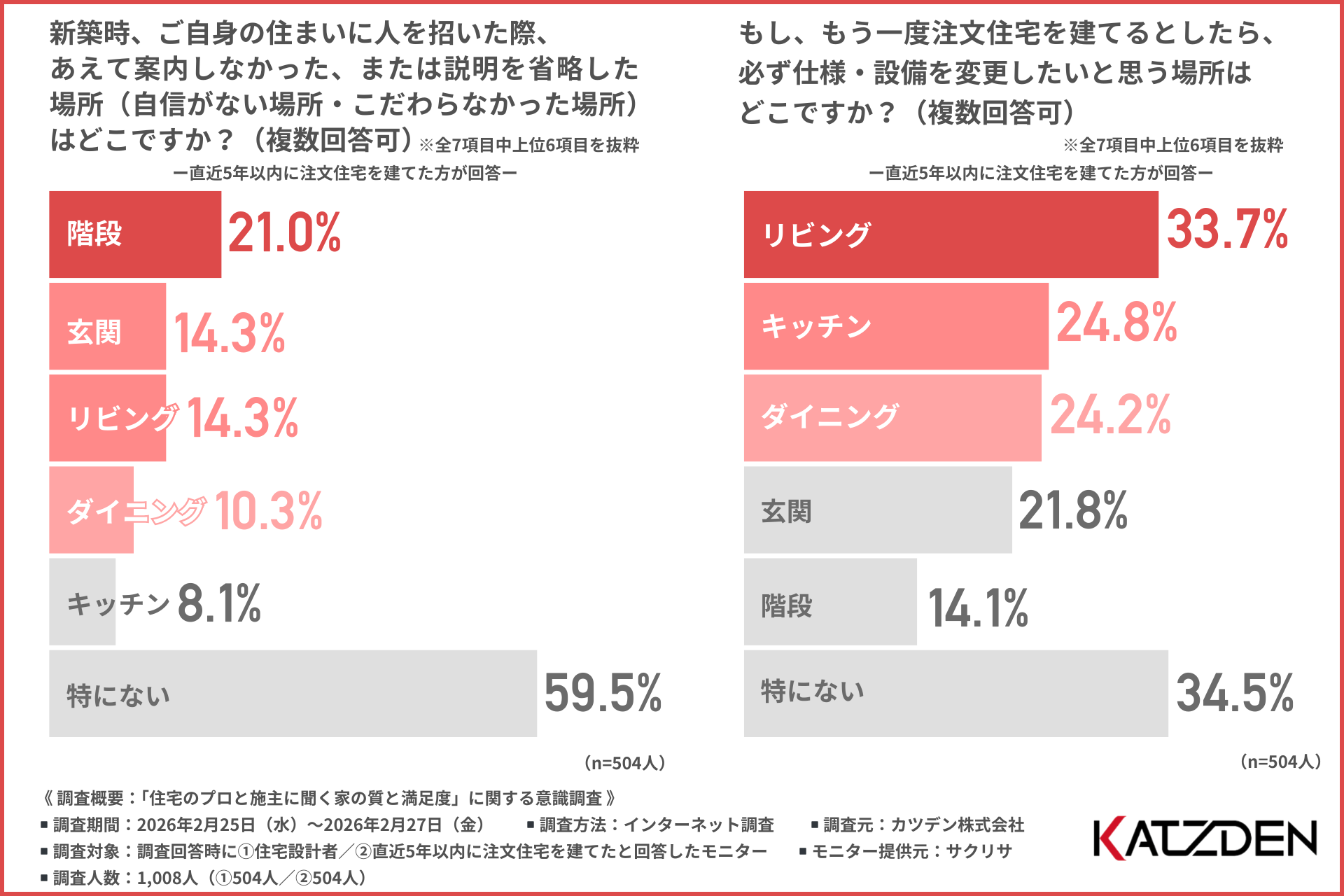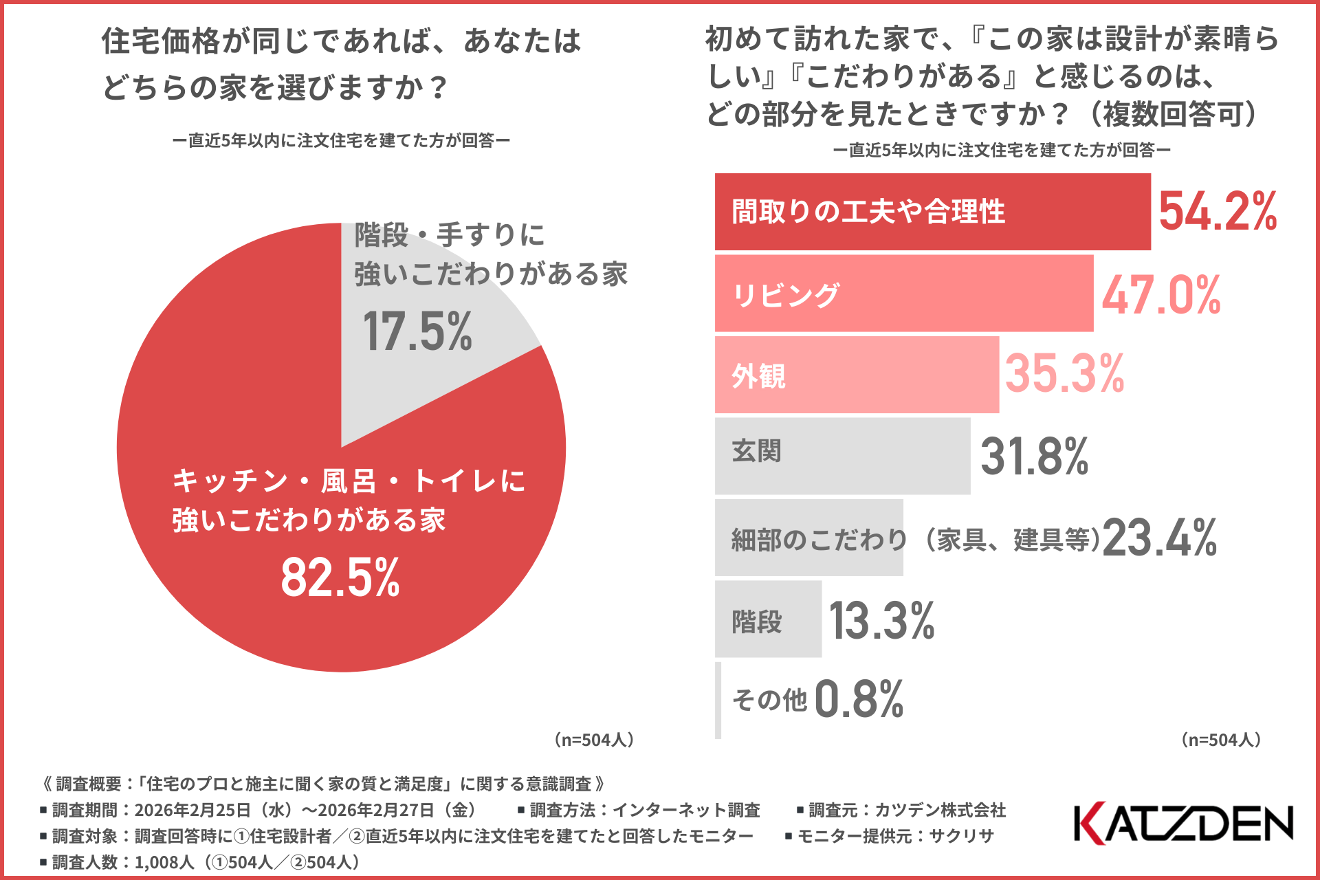 そこで今回、カツデン株式会社(https://kdat.jp/)は、①住宅設計者/②直近5年以内に注文住宅を建てた方を対象に「住宅のプロと施主に聞く家の質と満足度」に関する意識調査を実施しました。