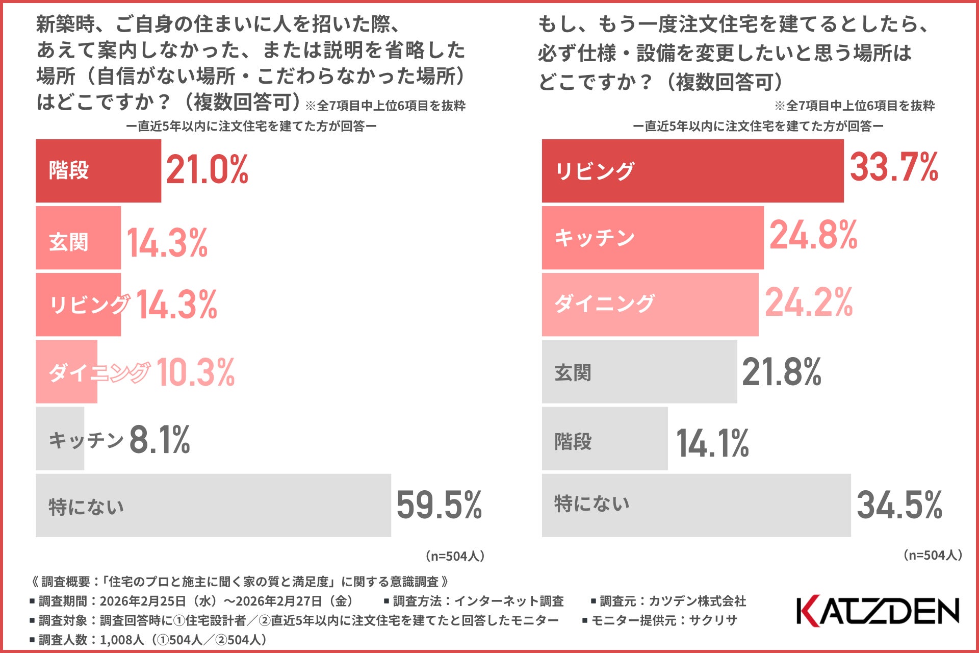 カツデン株式会社(本社所在地:東京都台東区、代表取締役:坂田 清茂)は、①住宅設計者/②直近5年以内に注文住宅を建てた方を対象に「住宅のプロと施主に聞く家の質と満足度」に関する意識調査を実施しました。
