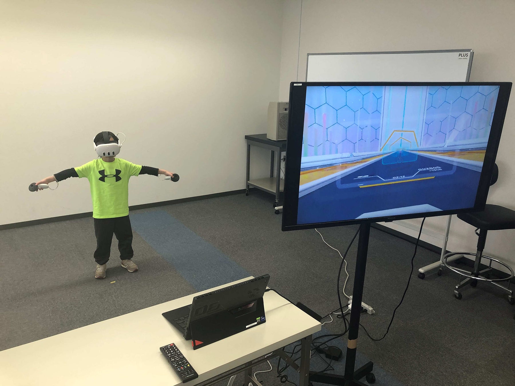 参加者はVRヘッドセットを装着し、自分の動きがリアルタイムで反映されるゲーム内の世界に没入しました。