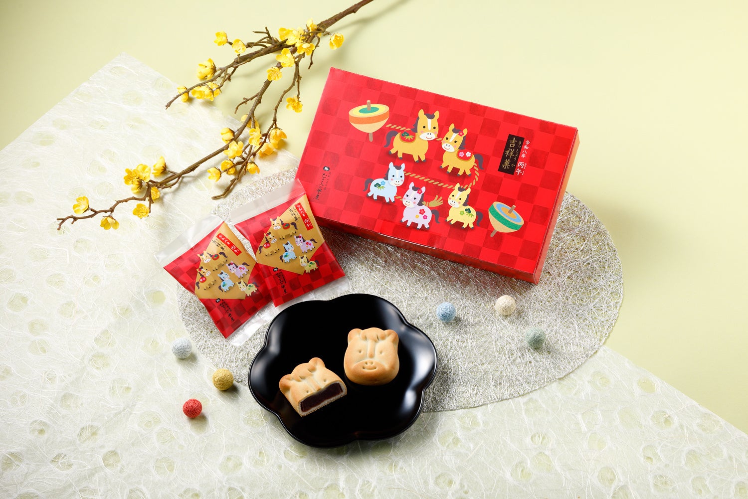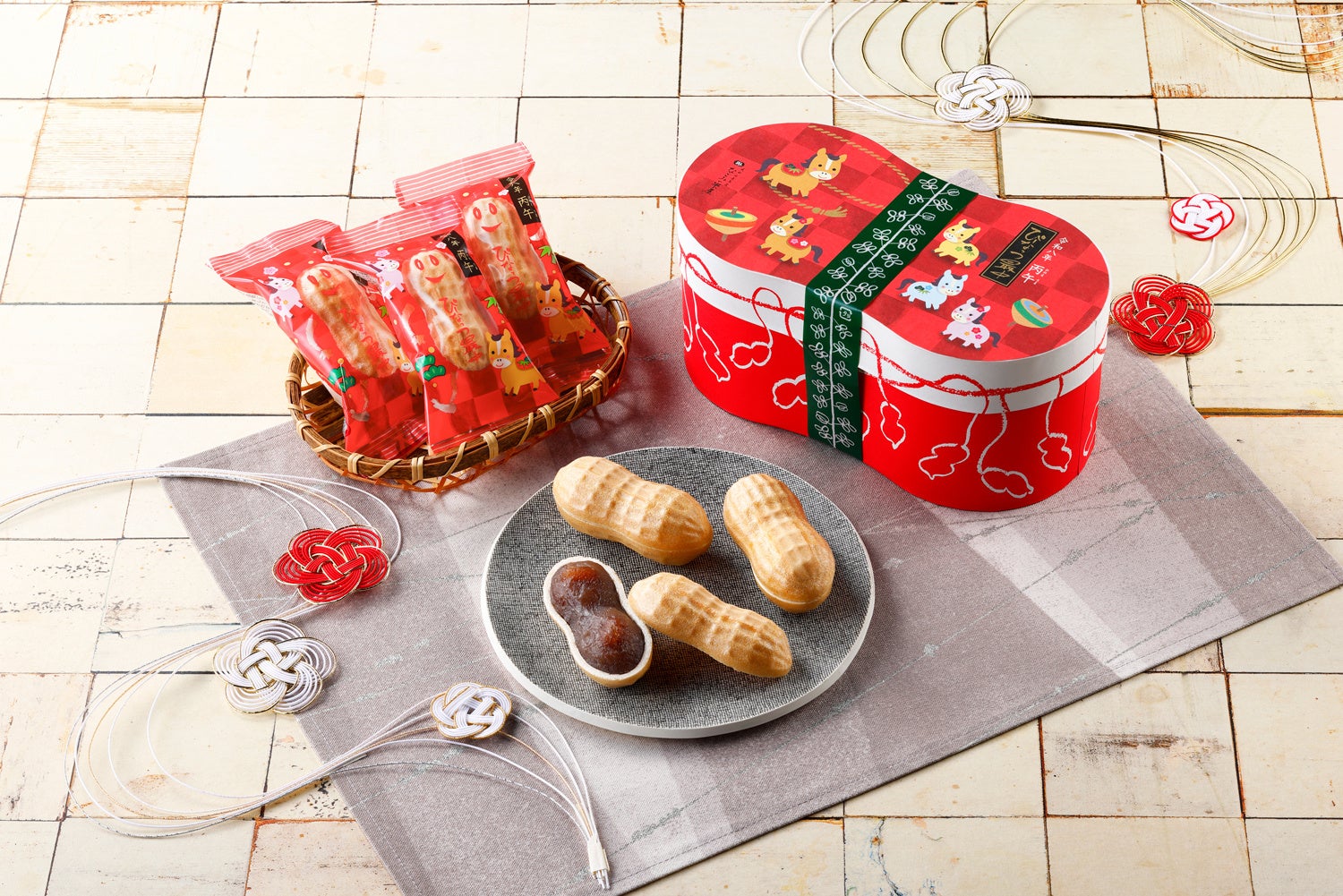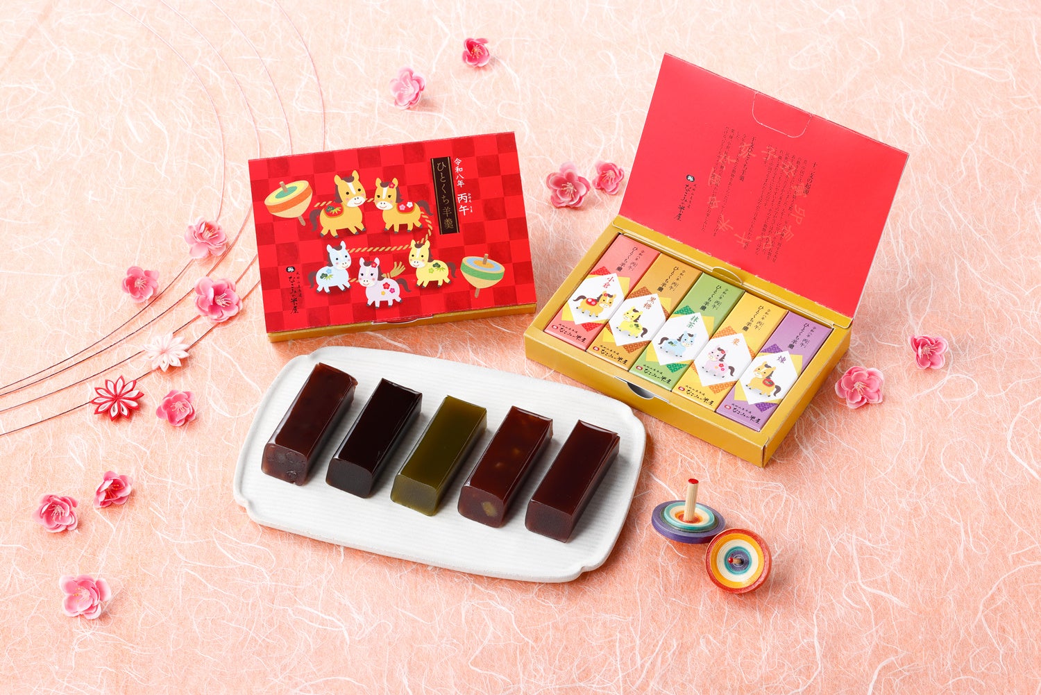 や、限定デザインのパッケージで包んだ人気の銘菓「干支ひとくち羊羹」・「干支ぴーなっつ最中」