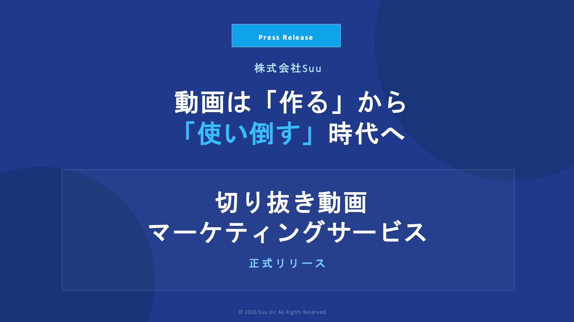 株式会社Suu(本社:東京都渋谷区、代表取締役:安藤鈴菜)は、企業の保有する動画資産を最大化し、圧倒的な認知拡大と成果創出を実現する「切り抜き動画マーケティングサービス」を正式にリリースいたしました。