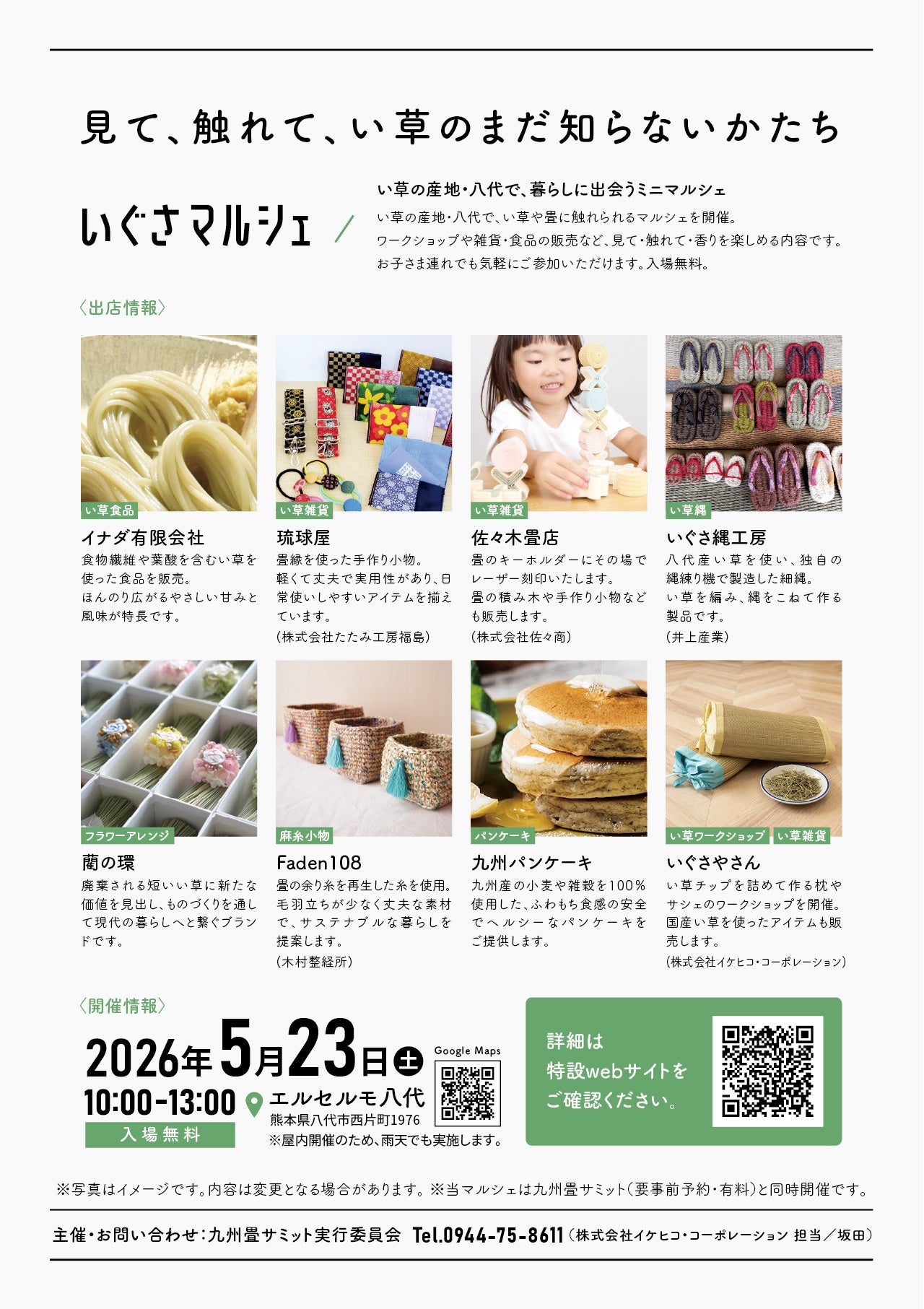 2026年5月23日(土)熊本県八代市エルセルモにて開催、い草の産地・八代で、和の暮らしに出会う「い草マルシェ」を開催