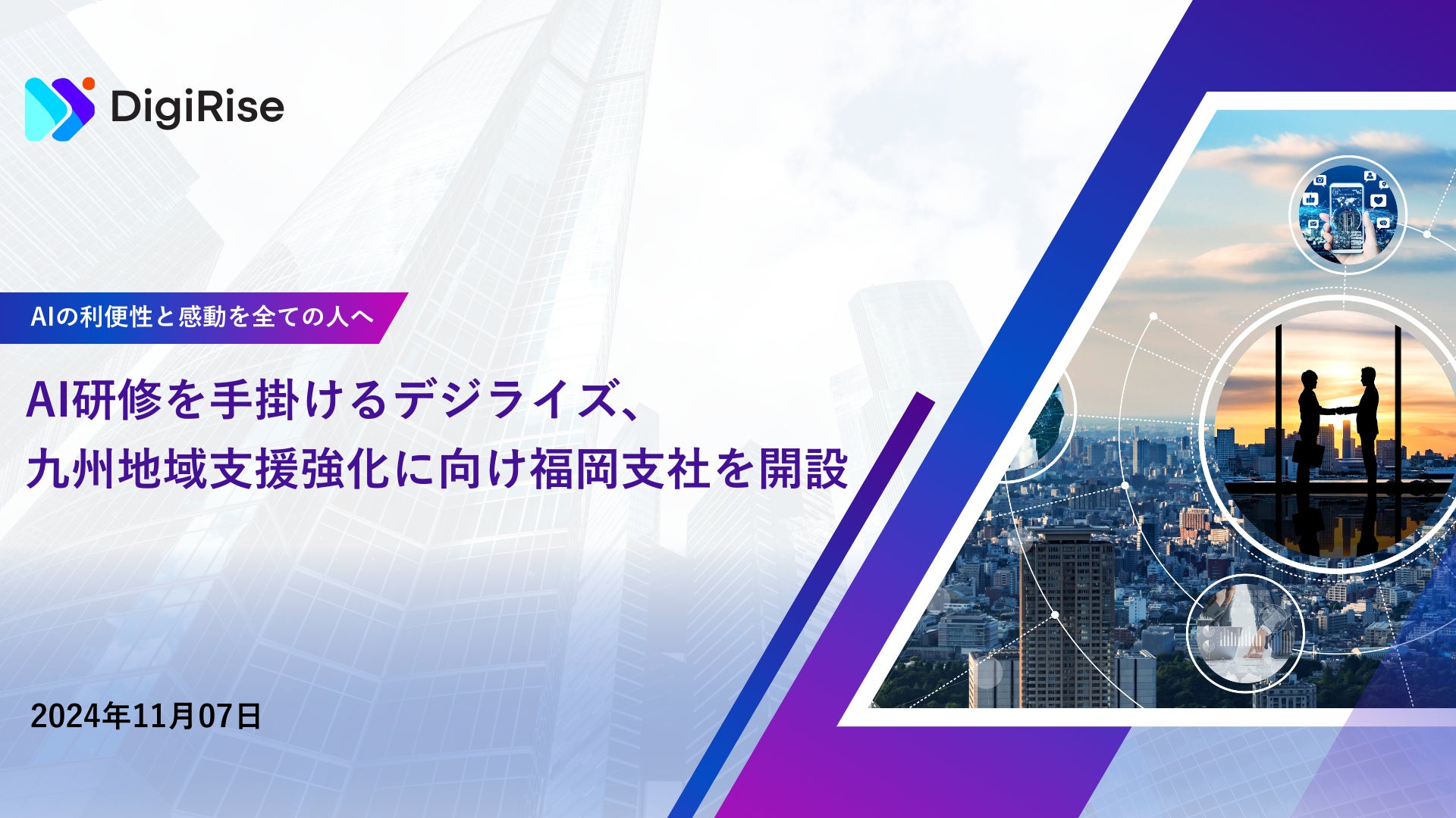AI研修と企業向けChatGPTを提供する株式会社デジライズ(本社:東京都港区、代表取締役:茶圓 将裕、以下 当社)は、2024年11月1日(金)に福岡支社を開設したことをお知らせいたします。