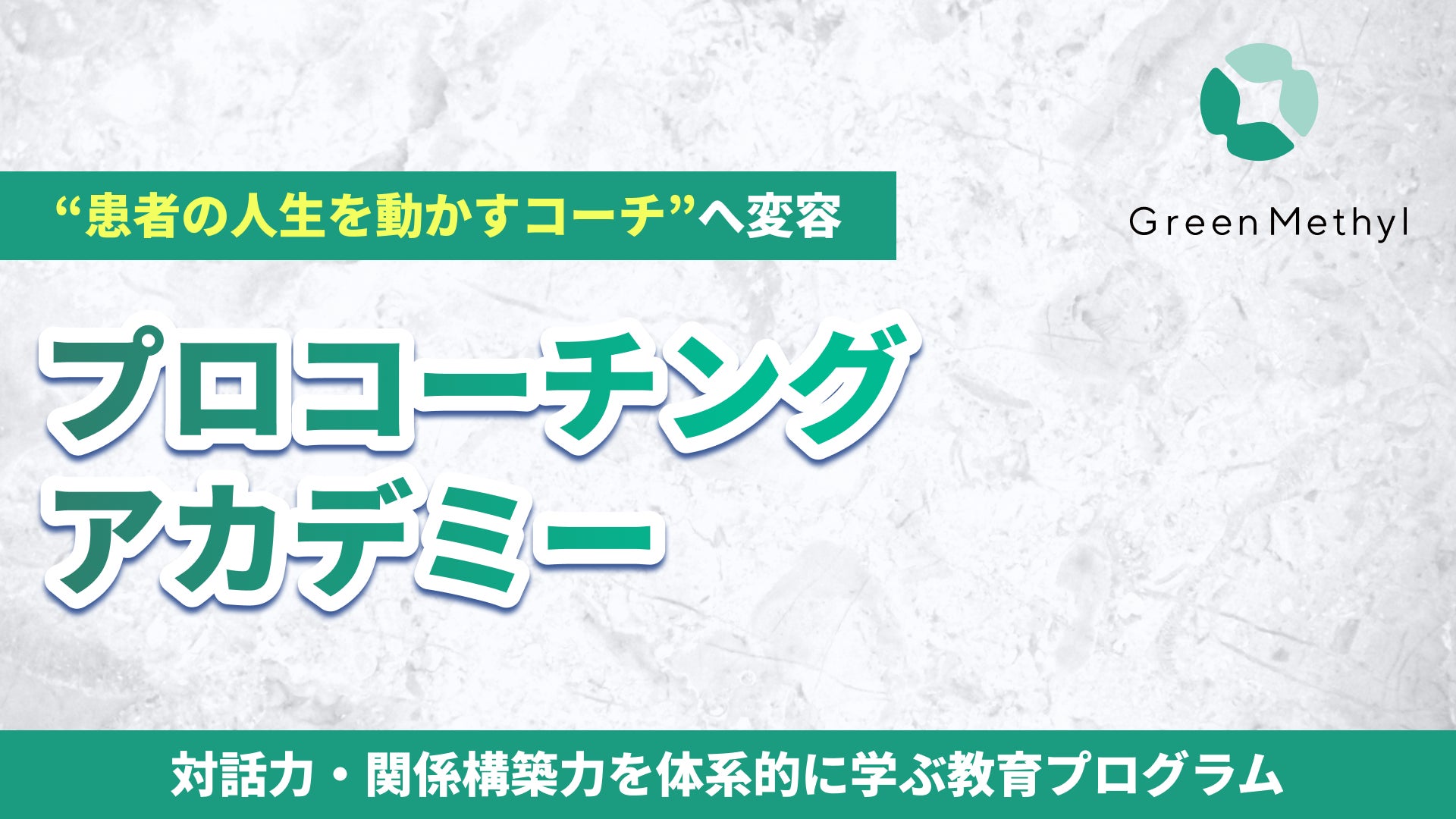 株式会社グリーンメチル(本社:埼玉県さいたま市、代表取締役:小林良太)は、医師および医療従事者を対象に、対話力・関係構築力を体系的に学ぶ教育プログラム「ドクタープロコーチングアカデミー」を提供しています。