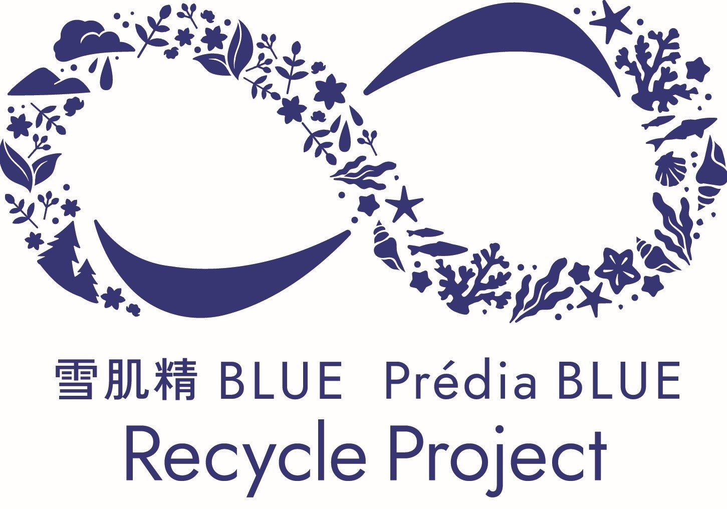 ものづくりにおいては、独自のクリーンポリシー「BLUE:美しい地球を未来へ繋ぐ私たちの信念」で掲げたサステナビリティ項目に則り、リサイクル可能なガラス容器、石油由来原料の使用量を削減するバイオマスPET容器、食品をはじめとした使用済み容器から資源を再利用して作られるリサイクルチューブ容器など、環境に配慮した容器を積極的に採用しています。この度開始する「雪肌精 BLUE・Prédia BLUE Recycle Project」においては、使用済み化粧品容器を「資源」と捉えて回収し、分別・洗浄・再資源化を行い、新しいモノに生まれ変わらせる取り組みを進めます。プロジェクトのロゴは、生物や植物のシルエットをあしらい、循環をイメージした『∞』マークを形づくることで、地球を守る姿を表現しています。