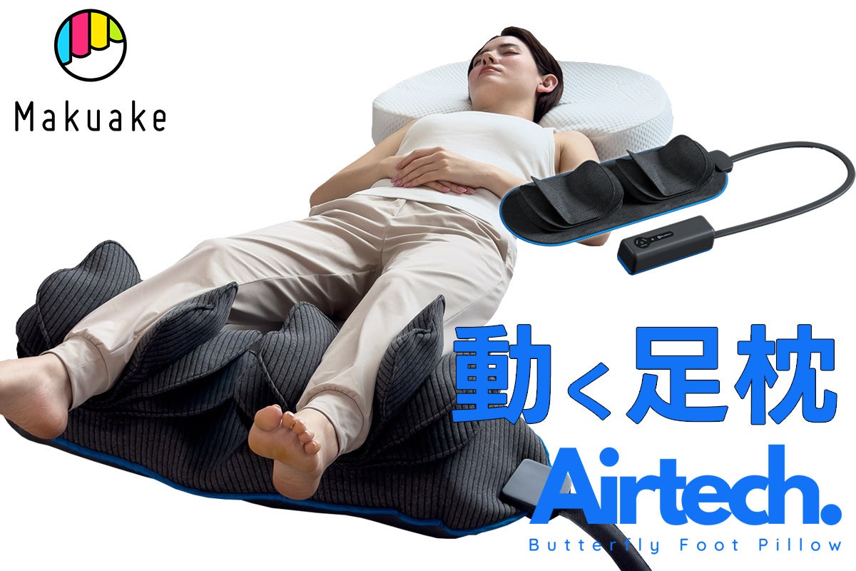 2024年6月26日から応援購入サイト「Makuake(マクアケ)」にて先行販売中の、株式会社ロウダン(本社:愛知県春日井市/代表:志水孝至)が展開するブランドBlueBloodの動く寝具『エアテックシリーズ』の新モデル「バタフライフットピロー」は、まもなくプロジェクトの終了を迎えます。開始10分で目標額を達成した同プロジェクトは、現在達成率1800%を超えさらに注目を集めています。