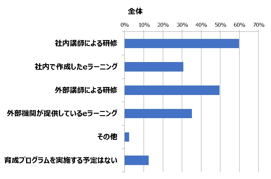 (貴社における新入社員・若手社員の育成プログラムの実施方法について、当てはまるものをすべてお選びください。)