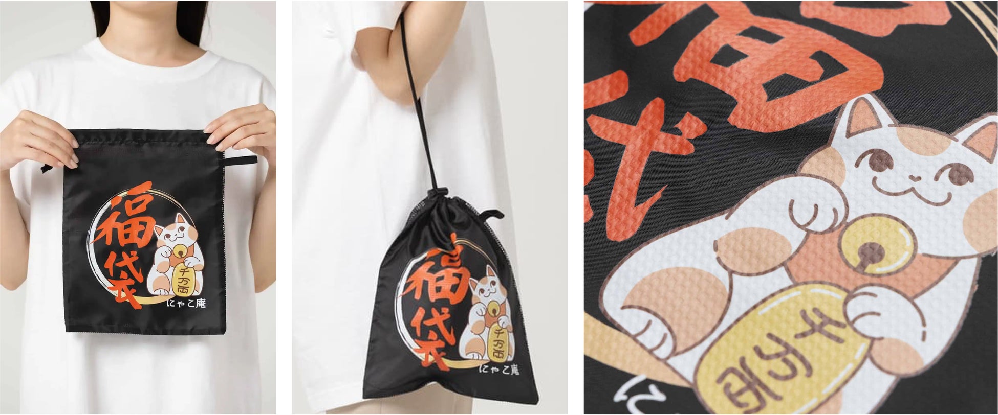 M・Lの2サイズ展開で、ポケット部分にプリントが可能です。