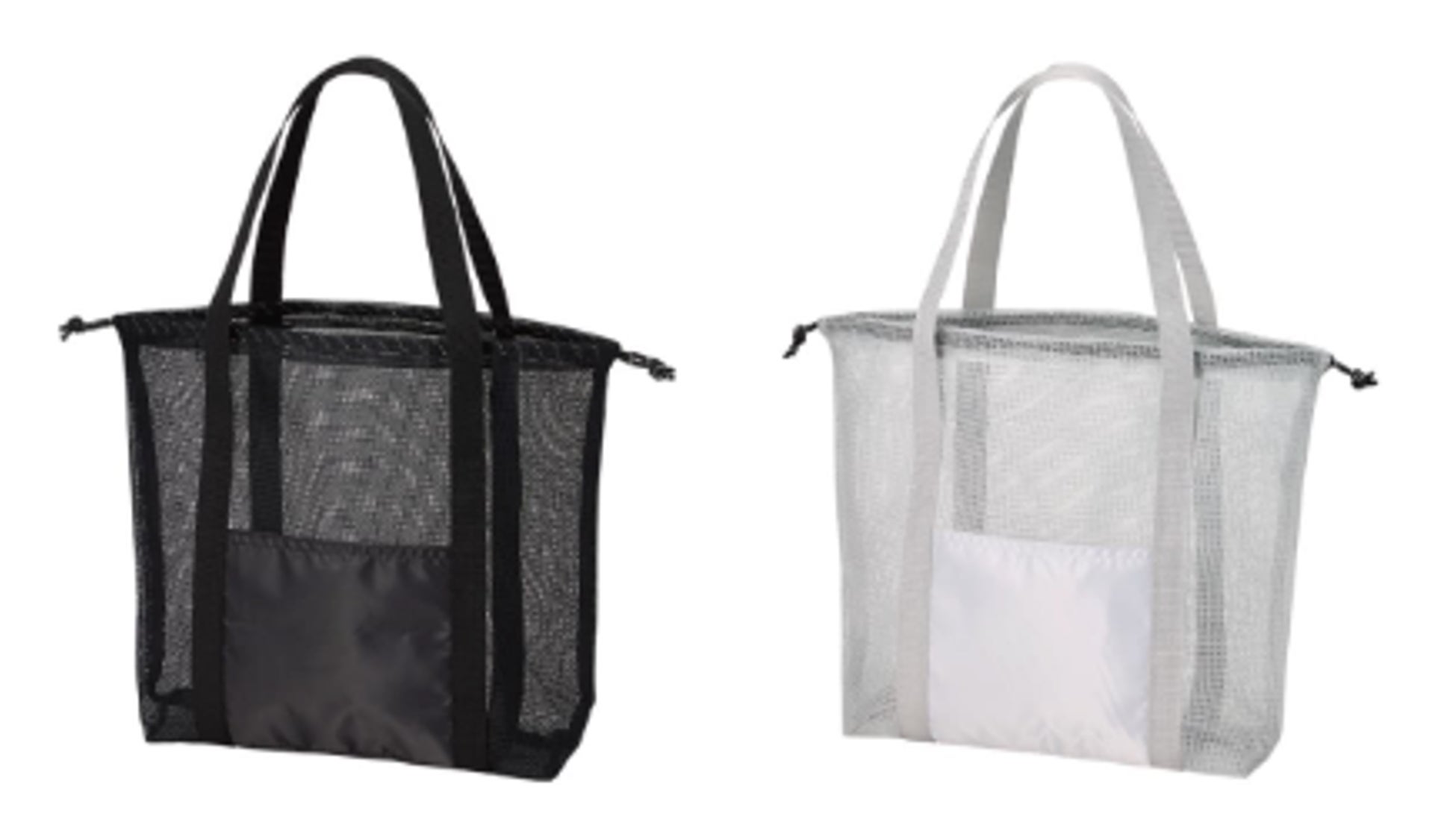 メッシュ素材がポイントのトートバッグ。軽やかな素材でプールなどのレジャーや、人気のサウナバッグとしてもおすすめです。外ポケット付きでスマートフォンなどを入れるのに便利な仕様です。