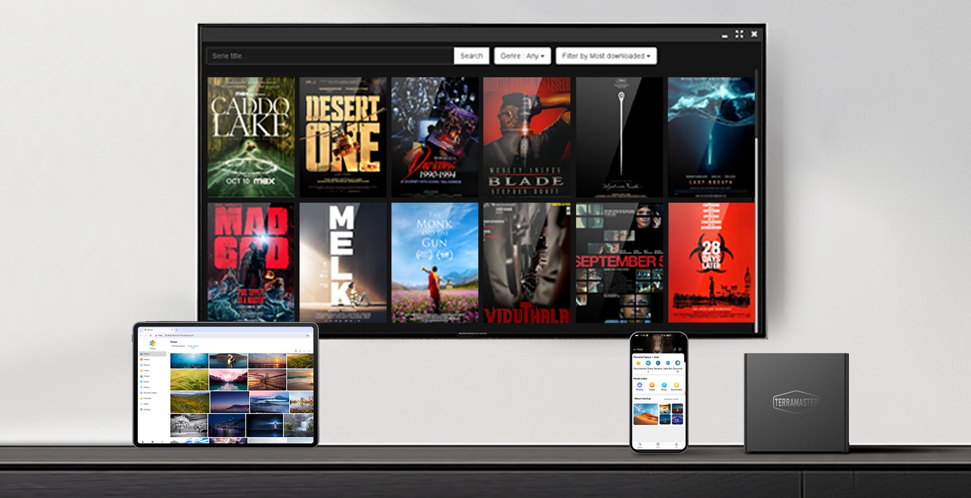 TERRAMASTERの「Multimedia Server」アプリに加え、PlexやEmby、Jellyfinといった人気メディアサーバーにも対応。高画質の映画や音楽を、テレビやタブレットで思いのままに楽しめます。