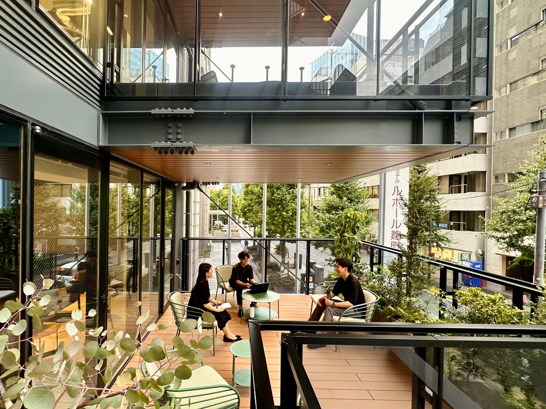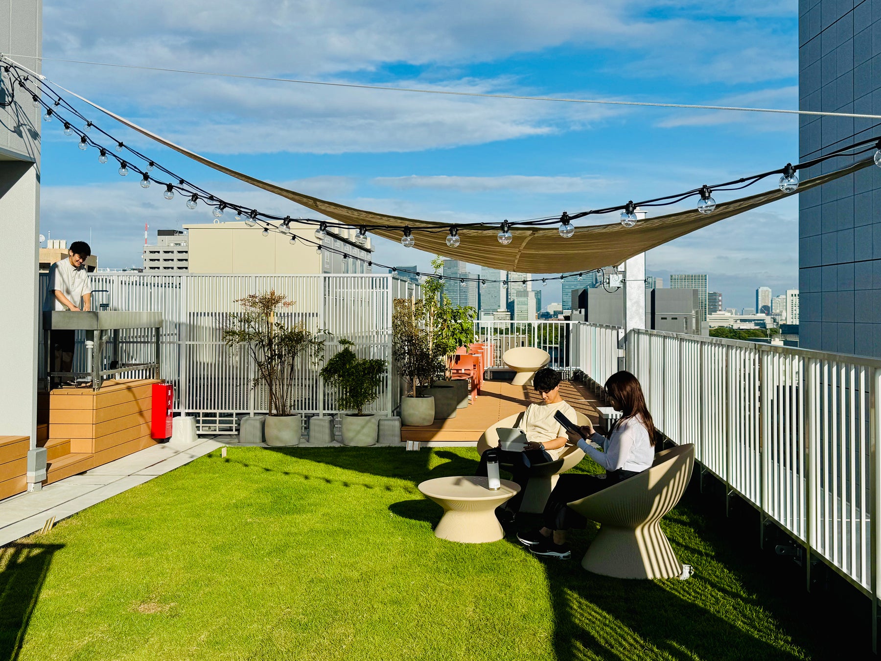 2階に共用ラウンジ、共用テラスを設置しており、会議後の談笑や休憩の場として利用できます。さらに屋上テラスでは、芝生の上で外気を感じリフレッシュできる環境を提供するほか、貸し切りによる職場内でのイベントなども開催可能です。