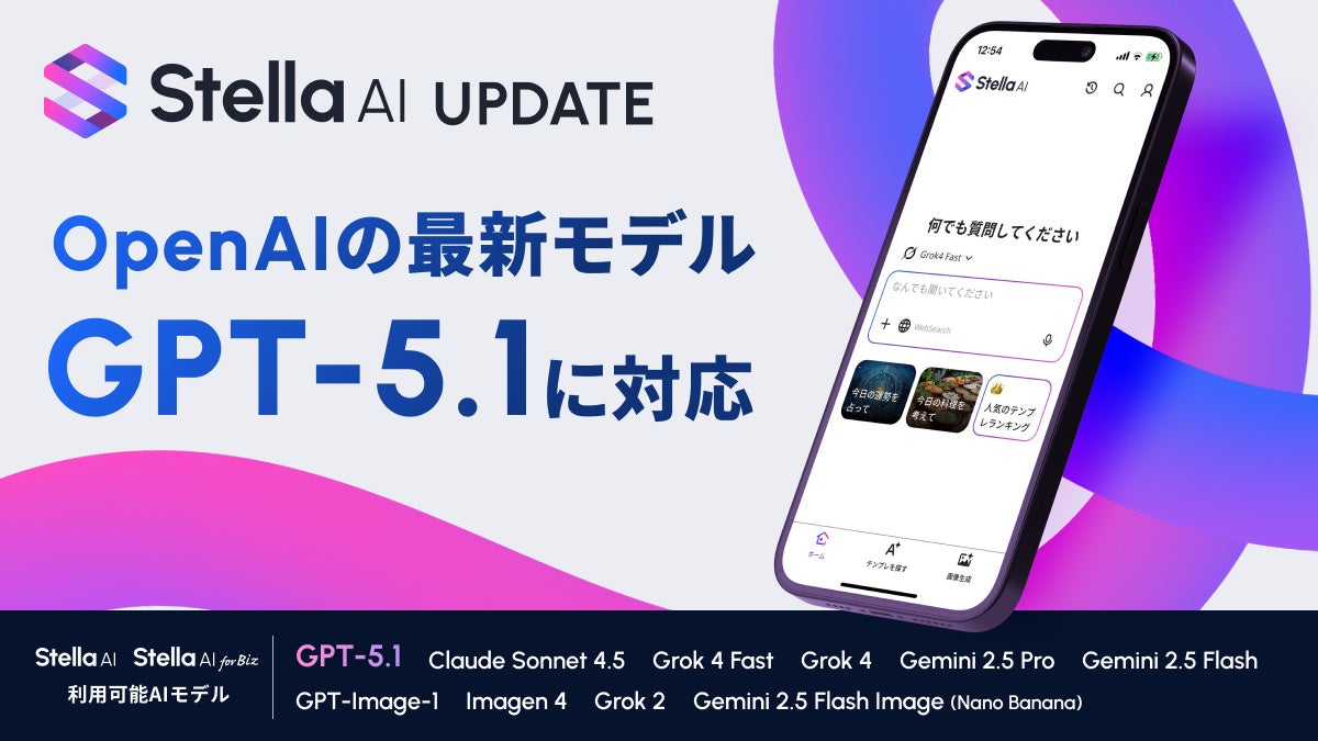 「Stella AI」に、OpenAI社の最新AIモデル「GPT-5.1」を追加