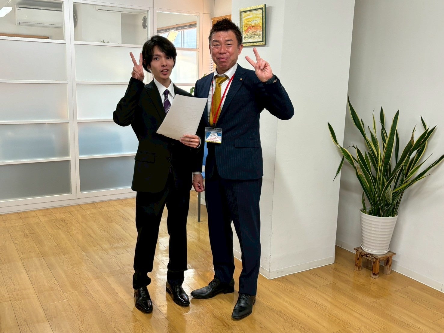 【決意表明の発表後、配属先の担当役員と記念撮影】
