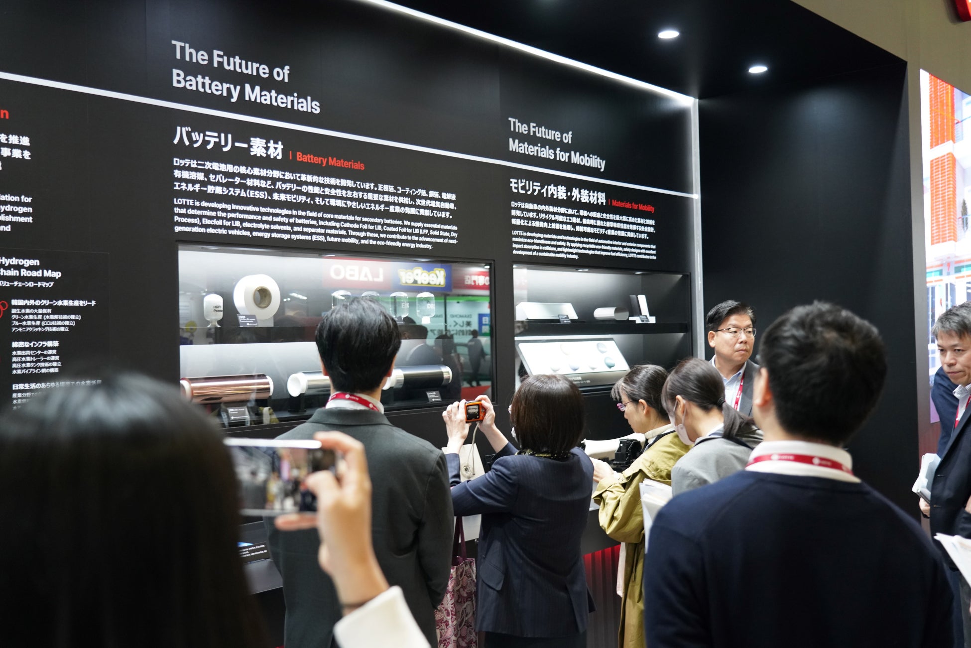 日本市場にすでに参入している事例として、バッテリー素材、モビリティ内装・外装材料、EV用急速充電器など、ロッテグループとして多岐にわたり展開しているモビリティ事業を、来場者の皆さまにご覧いただきました。
