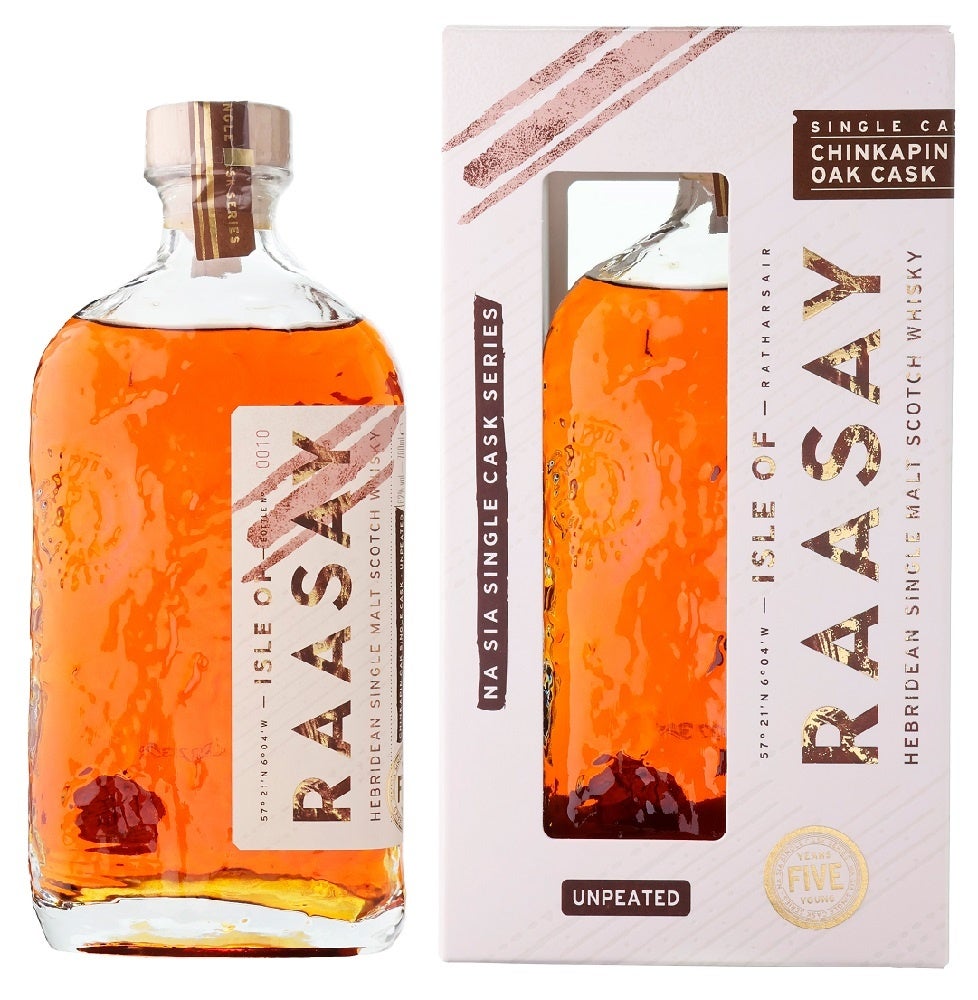 「ナ・シア」はゲール語で「6」の意味で、アイル・オブ・ラッセイでは独自のメソッドで造られる6種の原酒を指します。これはピーテッド、アンピーテッドの2タイプのニューメイクを、チンカピンオーク樽、ボルドー赤ワイン樽、ライウイスキー樽の3種の樽で熟成させたもの。ナ・シア5年シリーズは蒸溜所初の熟成年数表記商品で、日本には6種の原酒それぞれ1樽(250本前後)のみと特別な限定品です。1stフィル樽ならではのリッチな樽感と溌剌としたエネルギーの調和が感じられます。また、ラベルには「5 YEARS YOUNG」とあり、2年後の2026年に7年熟成、2028年に9年熟成を、そして2030年に11年熟成年数を「11 YEARS OLD」として発売する計画。この一連のリリースを通じてアイル・オブ・ラッセイの進化をボトルで表現していきます。