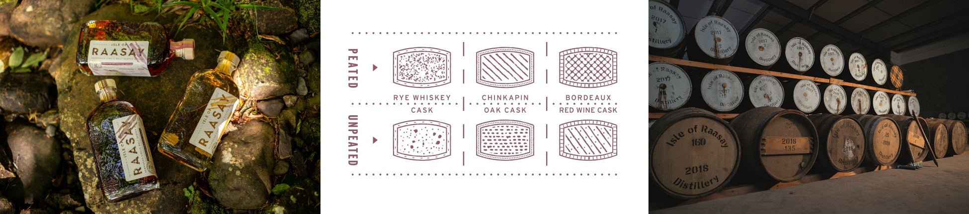 50ppmピーテッド原酒を1stフィルボルドー赤ワイン樽で5年間熟成。