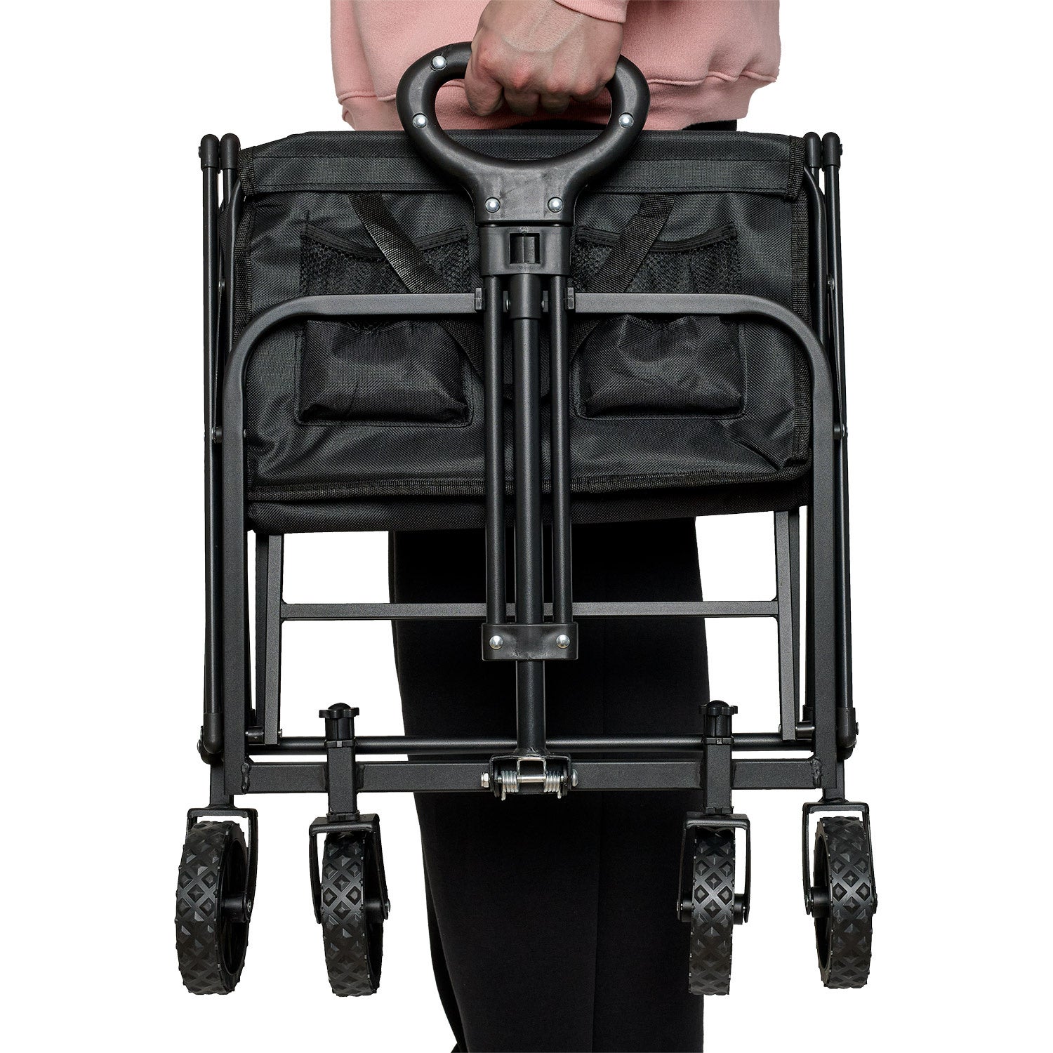 底部の持ち手を引き上げるだけで素早く折りたたみ可能。使用後の収納や持ち運びにも配慮しています。