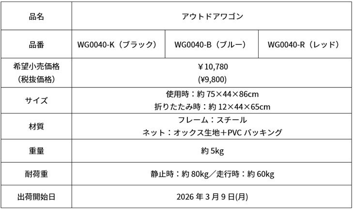 株式会社モルテン(本社:広島市西区、代表取締役社長:民秋清史、以下、モルテン)は、試合や練習に必要な荷物を一度にラクに運べる『アウトドアワゴン』を、2026年3月9日(月)から出荷開始し、公式オンラインショップや全国のスポーツ用品店などで順次販売します。