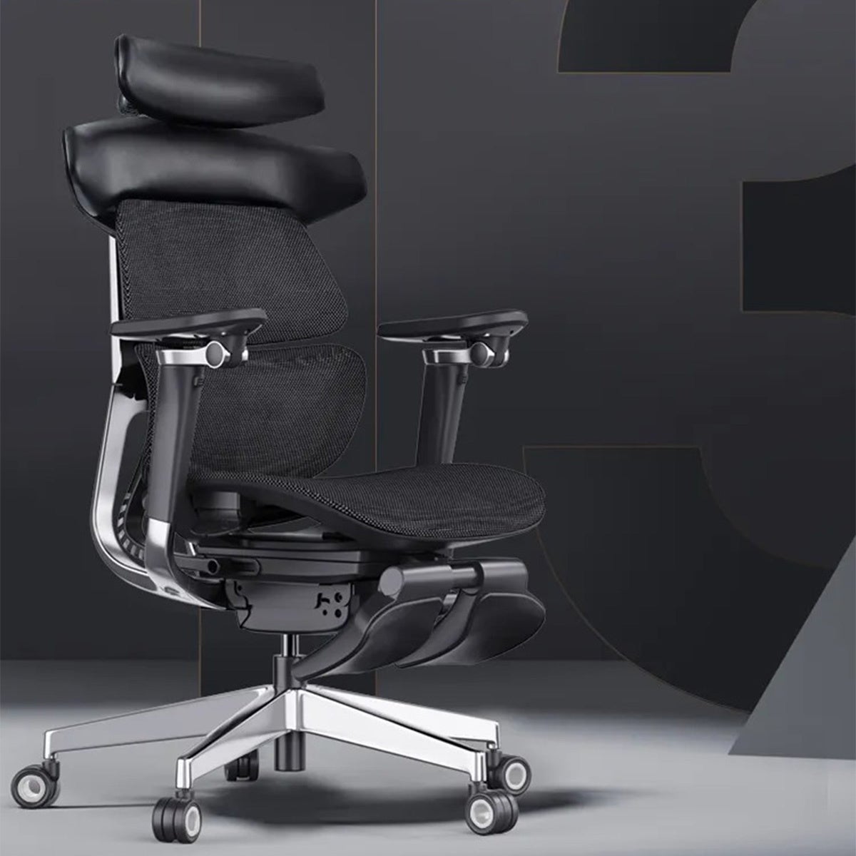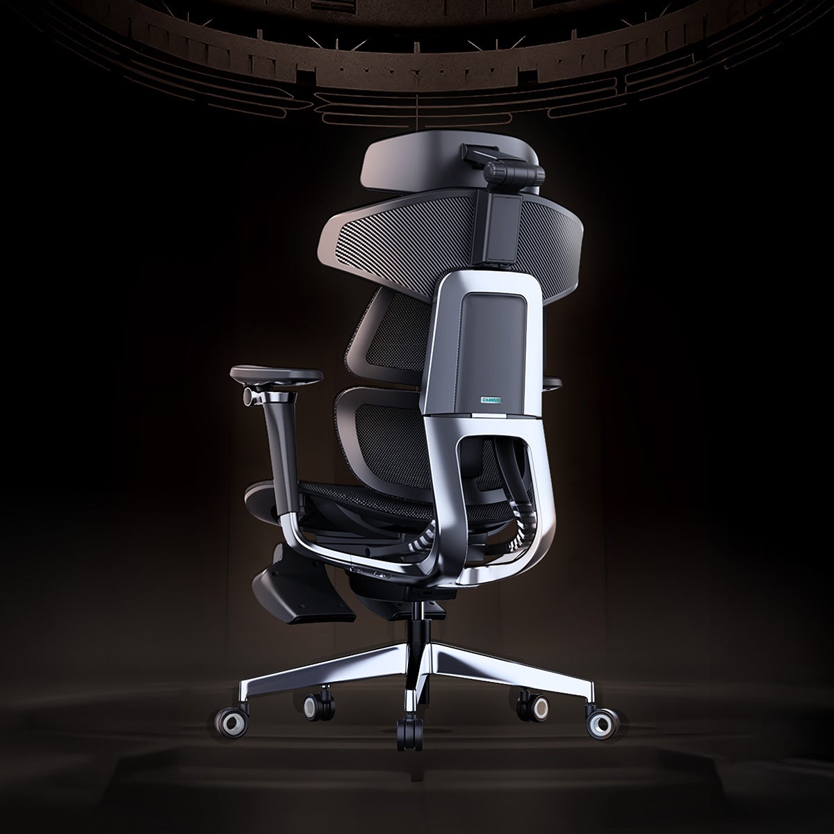 上質な天然皮革の重厚感と、メッシュ素材の軽やかさを融合。 独自の連動機構が身体のカーブに沿い、常に理想の姿勢をキープ。 作業中も、リクライニングで寛ぐ時間も、格別の座り心地を提供するハイエンドモデル。
