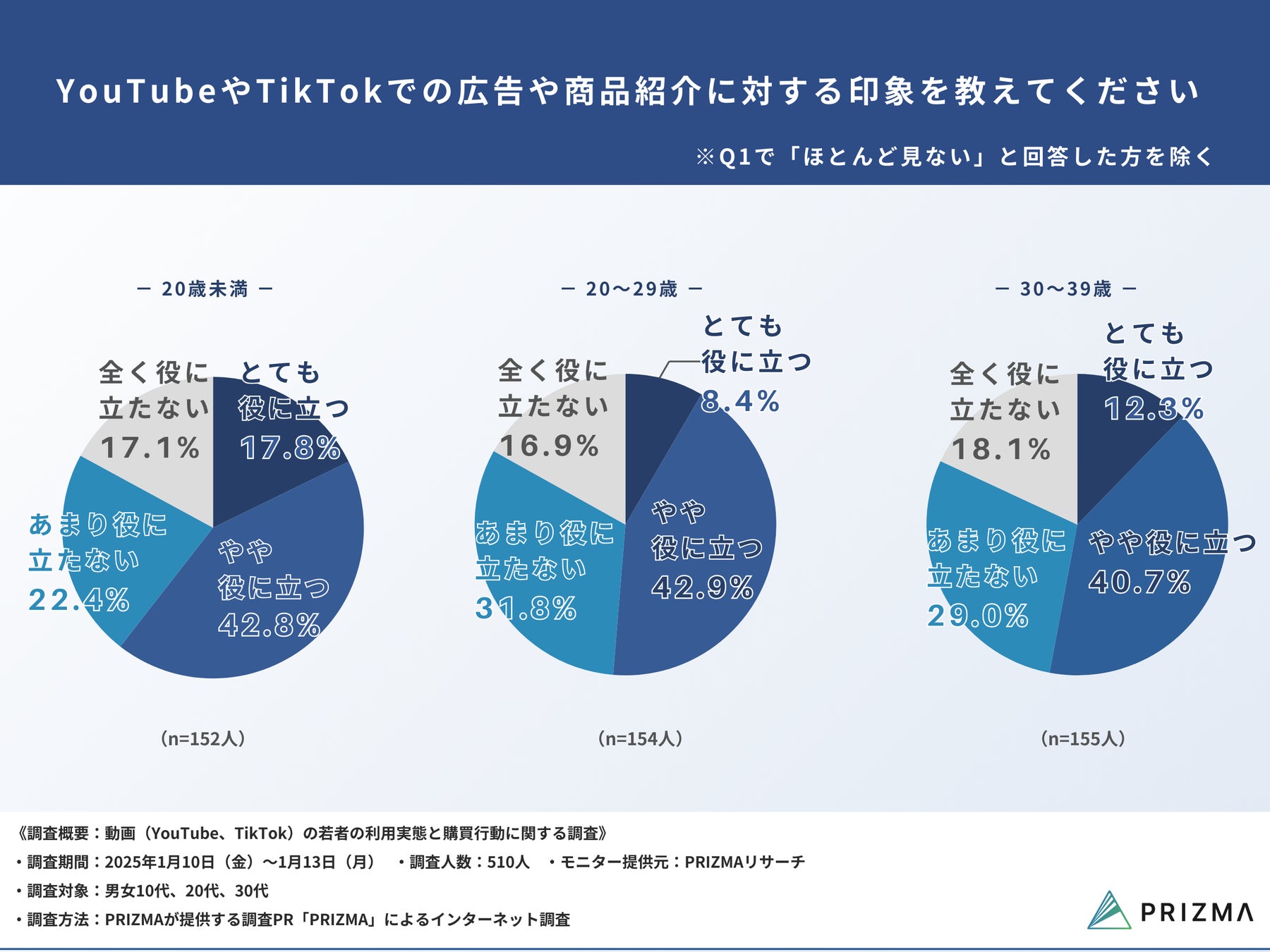 さらに、動画や広告の役立ち度に関しては、若い世代ほどポジティブな評価が高い傾向が見られました。「とても役立つ」や「やや役に立つ」と回答した人は、商品の特徴や使用感が具体的で分かりやすく、信頼できる配信者が紹介している点に価値を感じていることがわかりました。