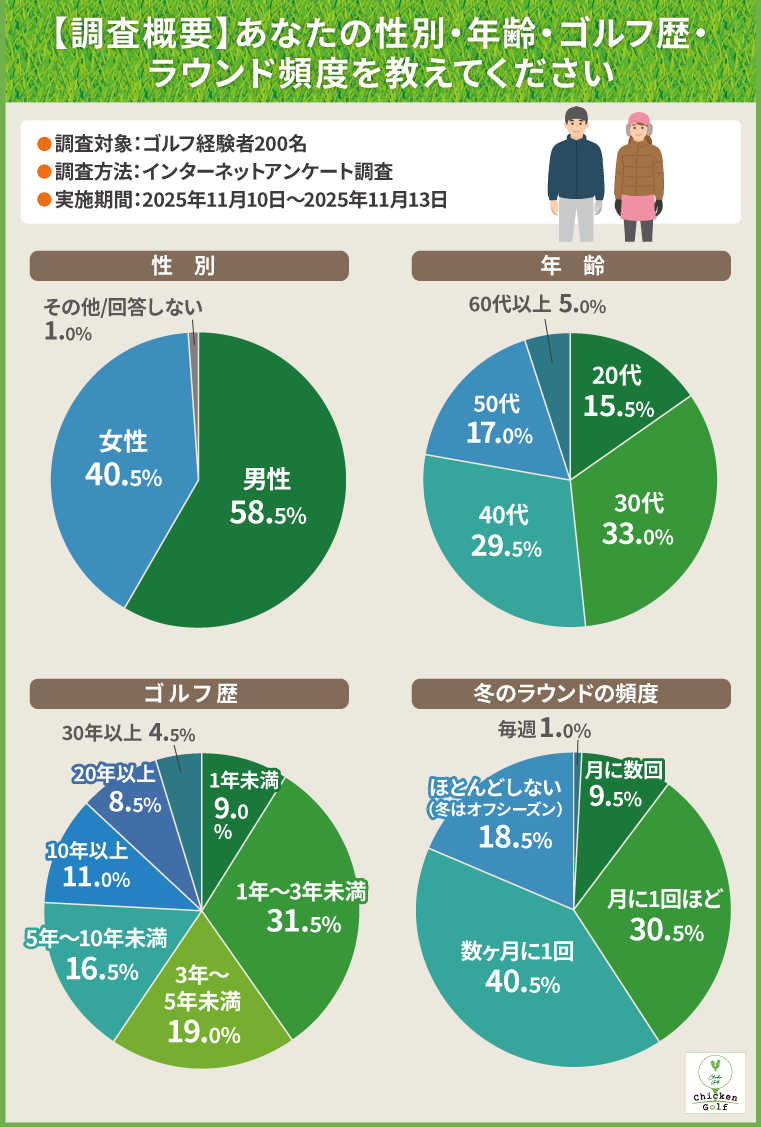 本アンケート結果を引用する場合は、必ず「チキンゴルフ」の明記とゴルフの学び舎のURLの記載をお願いします。