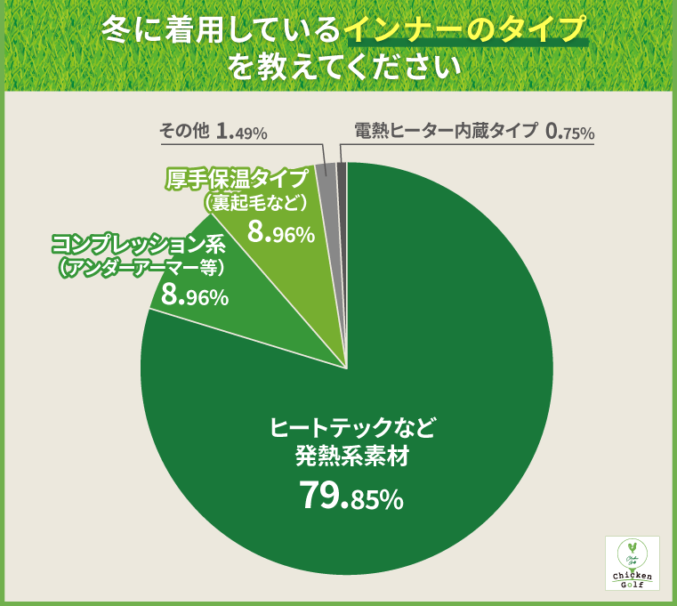 この結果から、インナー派は「厚着で守る」よりも「薄く重ねて温度をコントロールする」という、ゴルフのような“動的スポーツ”に適した防寒対策を取っていることが推察されます。