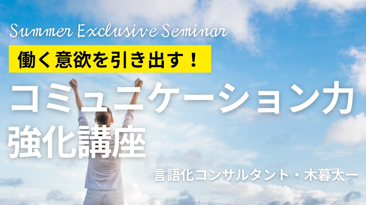 【夏季限定】言語化コンサルタント・木暮太一が社員の「働く意欲低下」に対策!コミュニケーション力で働く意欲を引き出す”集中講座”開催