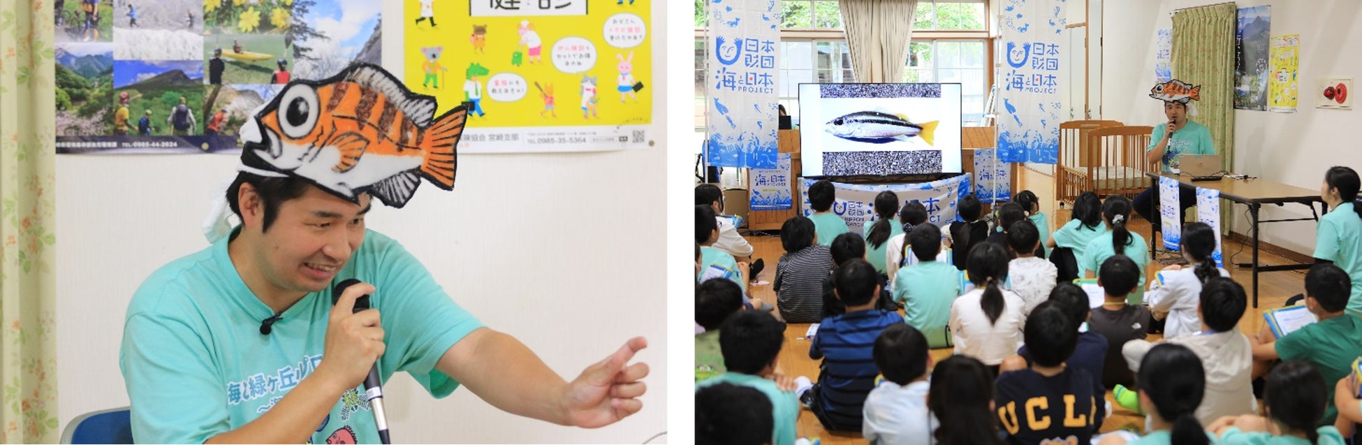 講師を務めてくださったのは、宮崎大学農学部農学科・海洋生命科学コースの村瀬准教授。県北の海の特徴や、そこに生息する多様な魚たちについて、わかりやすく教えていただきました。