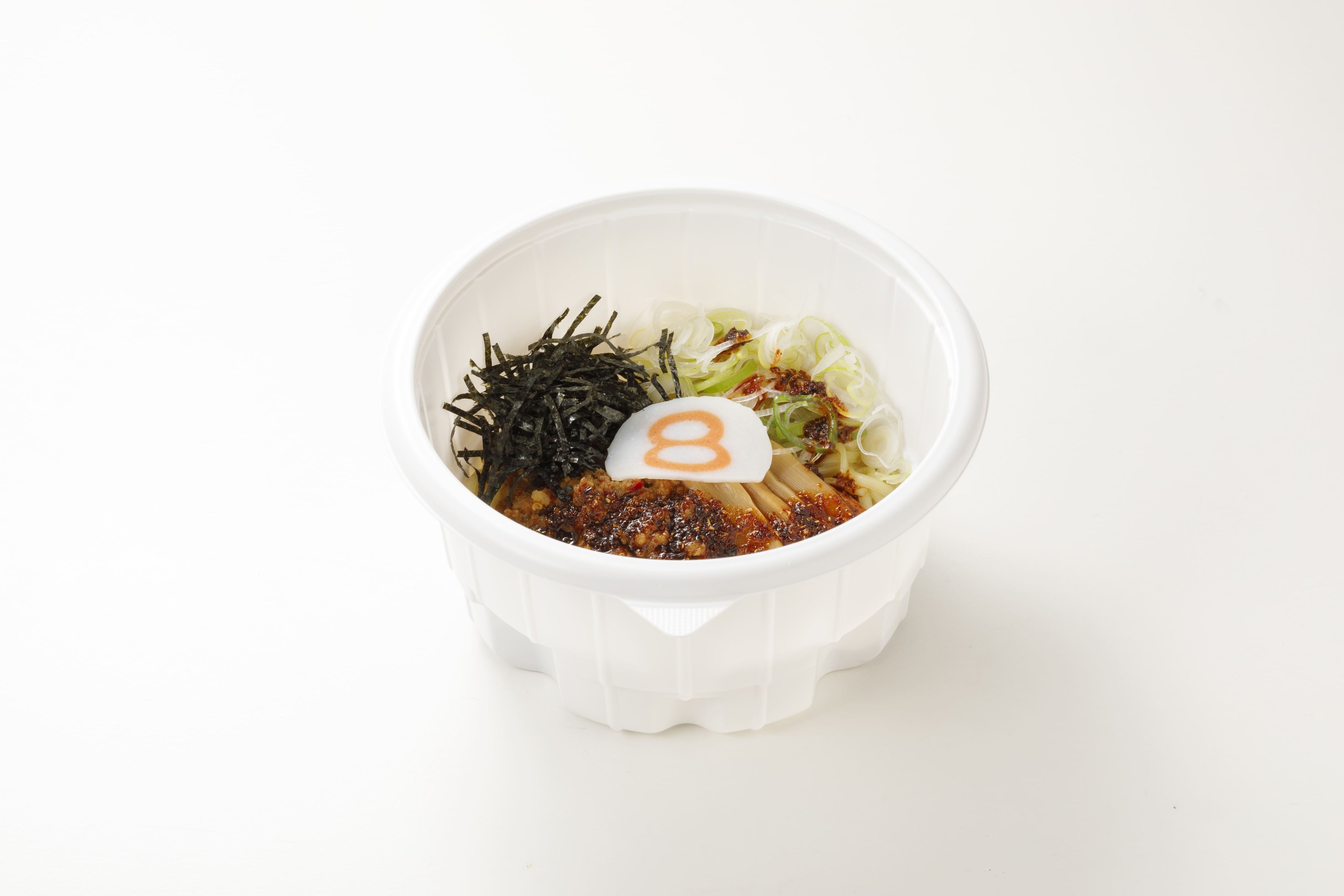 鰹や昆布、チキンの旨みが特長の8番流まぜそば「唐麺」に、肉味噌のコク深い旨味や粗挽き唐辛子の辛味が特徴の「麻辣辛肉味噌」、3種の山椒の痺れと華やかで香ばしい香りが引き立つ「麻辣オイル」をトッピングした、ガツンと刺さるような“シビ辛”がクセになるらーめんです。召し上がる前に具材をよく混ぜてお召し上がりください。