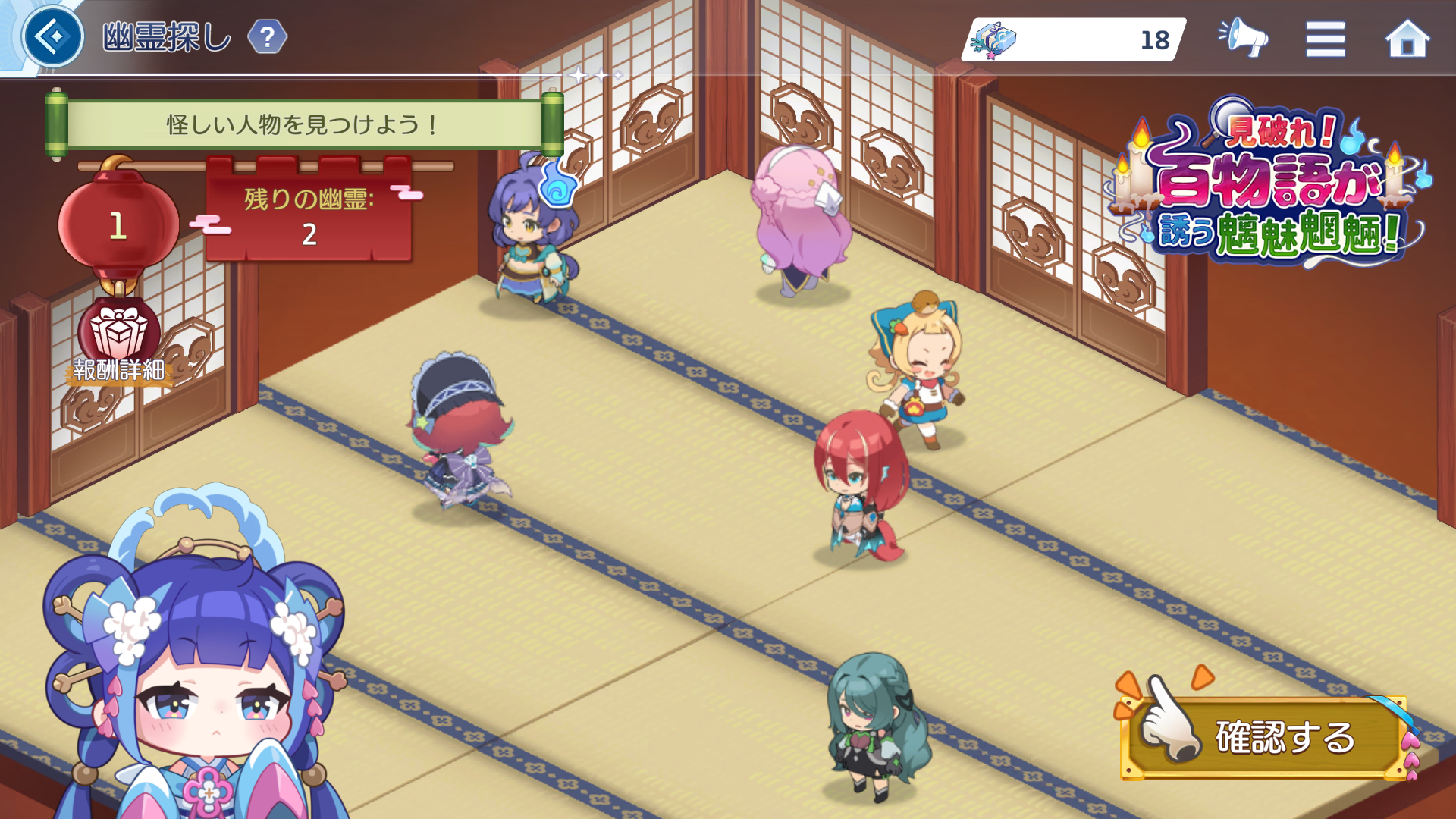 キャラクターに扮したお化けを見つけるゲームとなります。温泉を訪れたキャラクターの中で、怪しい言動をしているものがいないか見極めていく人狼風な要素が楽しいミニゲームです。