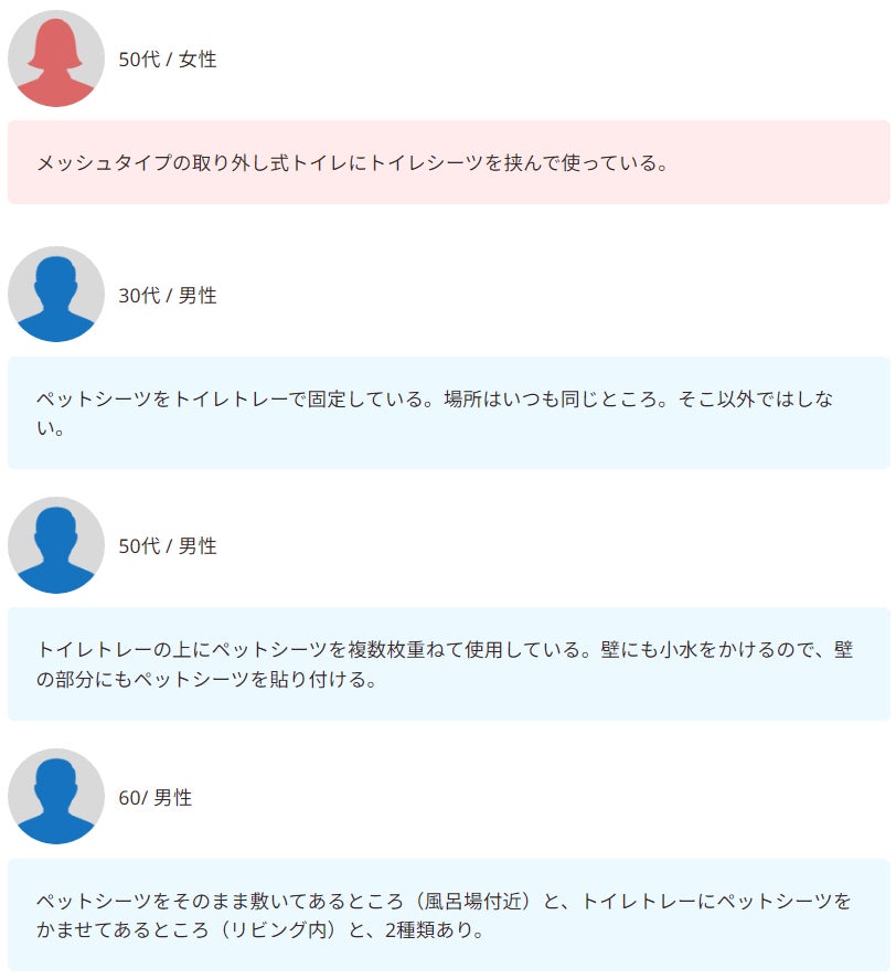 こちらは、多くの家庭で採用されている「トレー×シーツ」を利用している飼い主さんの声です。