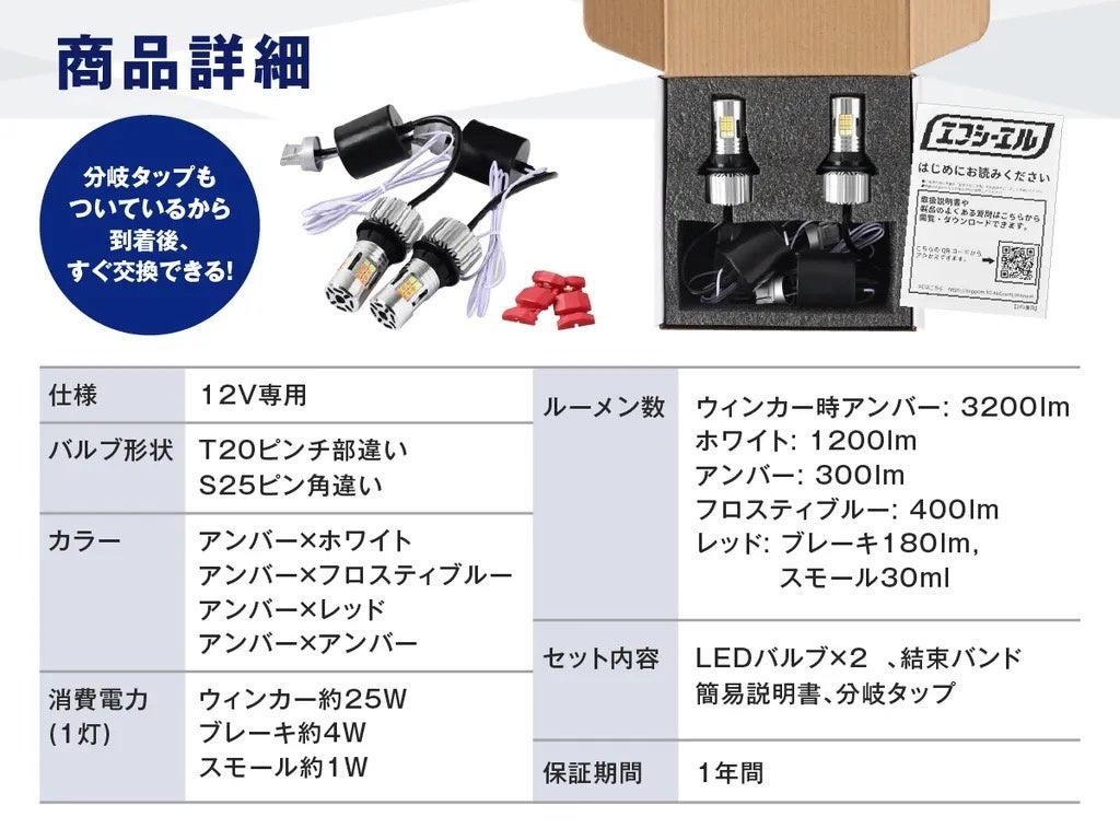 本製品は、T20ピンチ部違いとS25ピン角違いの2種類で展開し、より多くの車種に対応します。