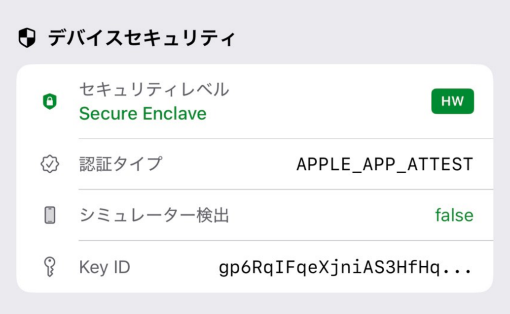 この機能は、法的証拠としての利用や企業の内部監査において、デバイスの改ざん耐性を第三者が客観的に評価する際に有用です。iOS版・Android版で統一されたフォーマットで表示されるため、プラットフォームを問わず一貫した検証体験を提供します。