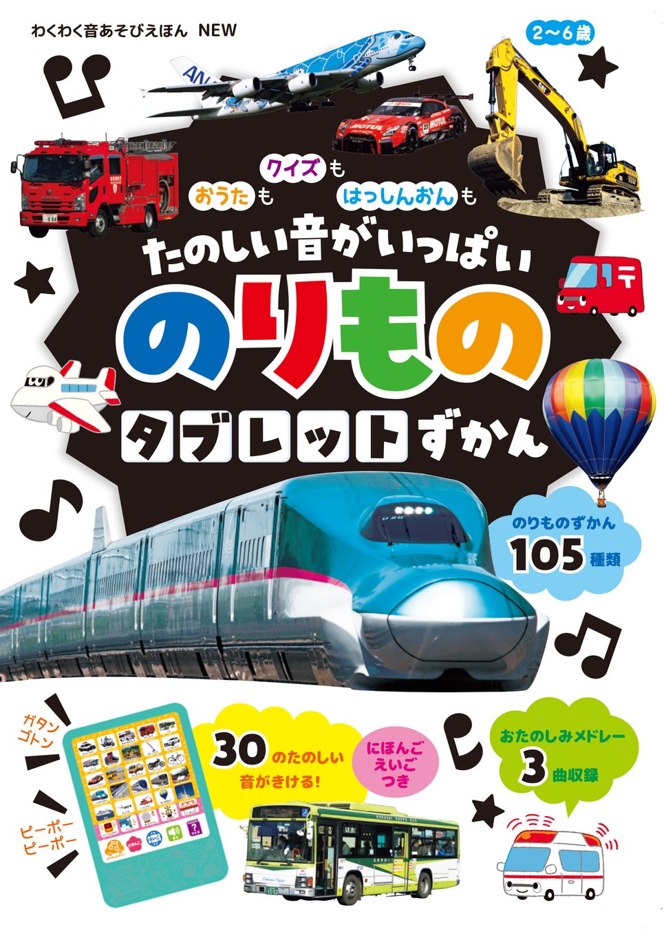 『NEW おうたも クイズも はっしんおんも たのしい音がいっぱい のりものタブレットずかん』 https://books.rakuten.co.jp/rb/18556605/